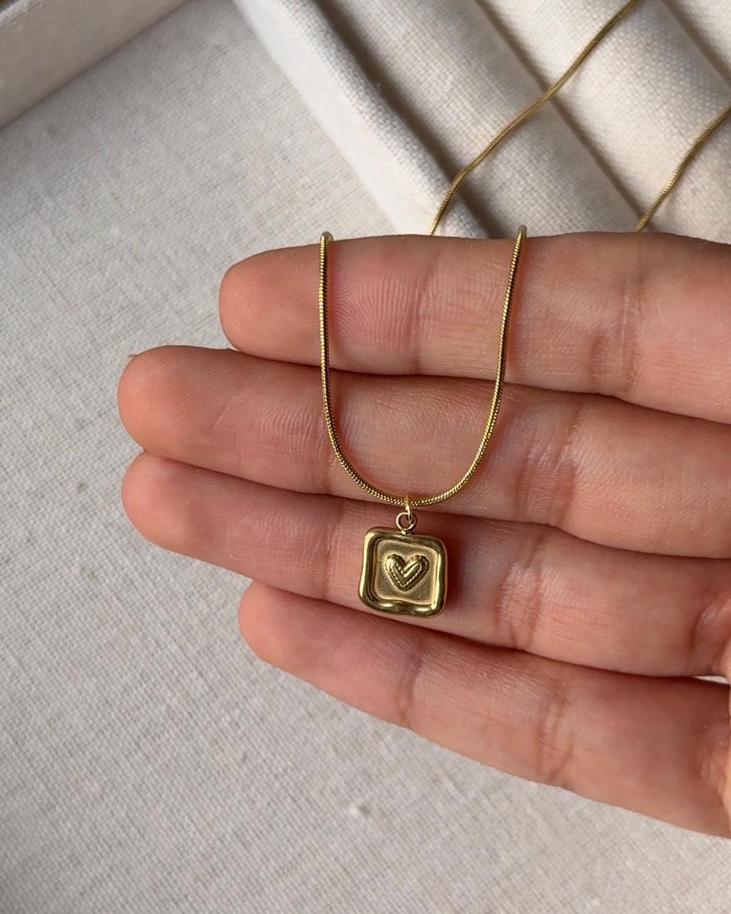 Gold necklace, heart necklace, square necklace, old money jewellery, charm necklace, Pinterest inspired jewellery, anti tarnish necklace, stainless steel necklace, gold jewellery