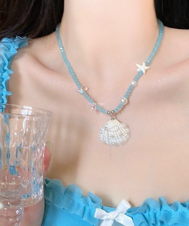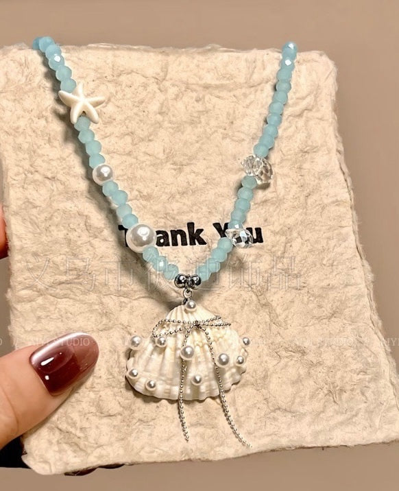 Pearl necklace, white necklace, blue necklace, shell necklace, silver necklace, bow necklace, gifts for girls, Halloween accessories, Halloween jewellery
