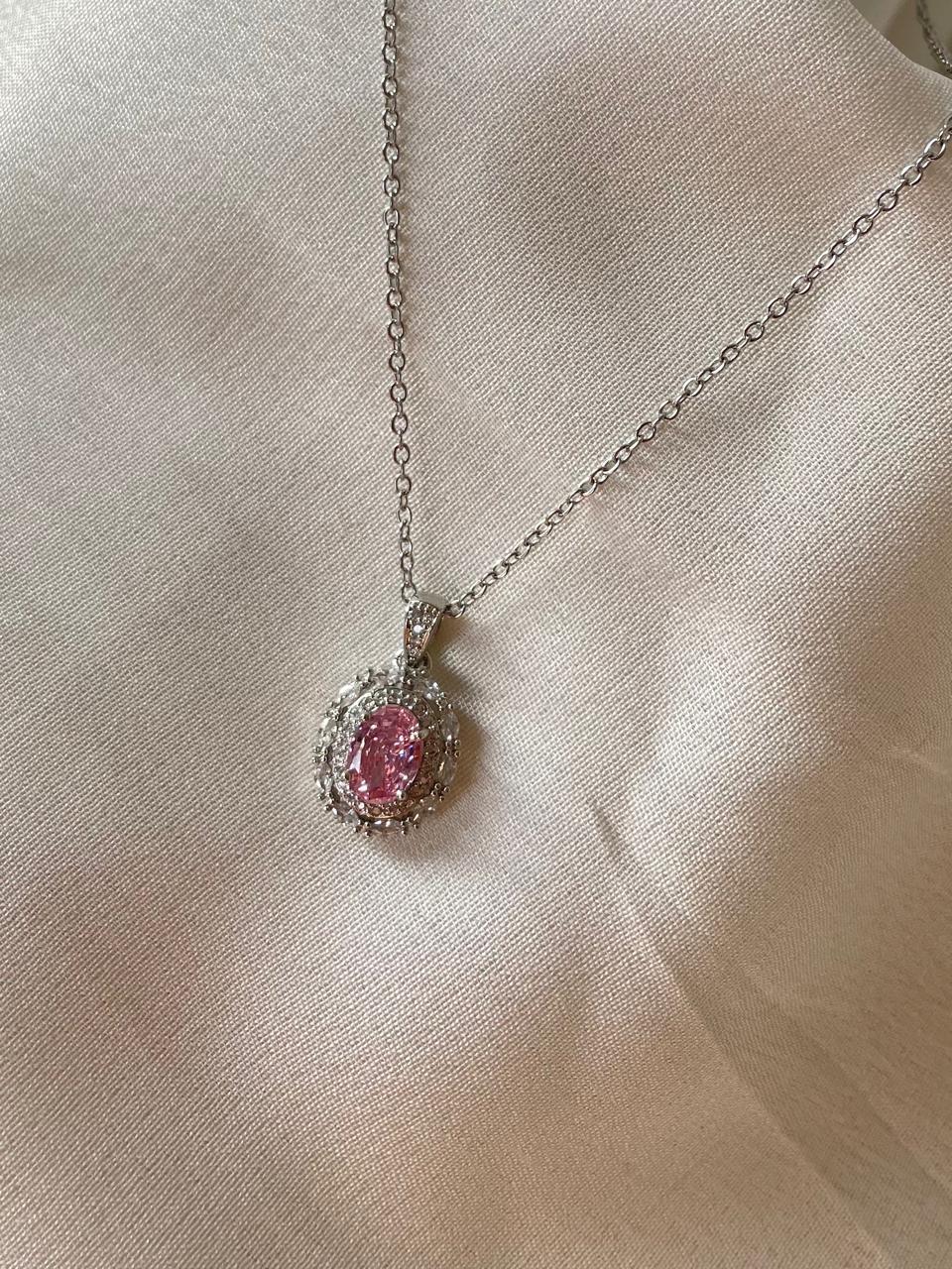 Pink necklace, rhinestone necklace, stainless steel necklace, silver necklace, Pinteresty necklace, dreamy necklace, anti tarnish necklace