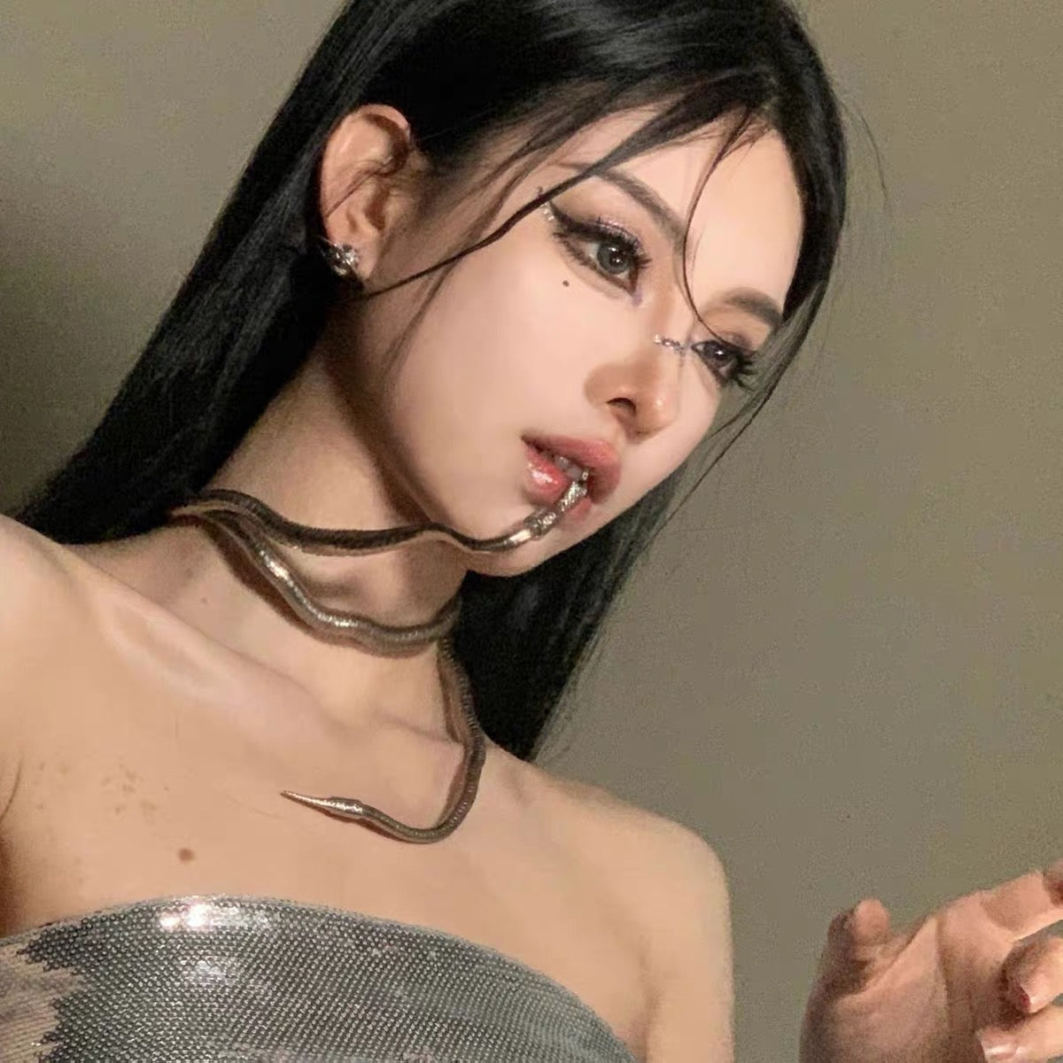 Silver jewellery, snake jewellery, silver chain, snake necklace, baddie jewellery, grunge aesthetic, multipurpose jewellery