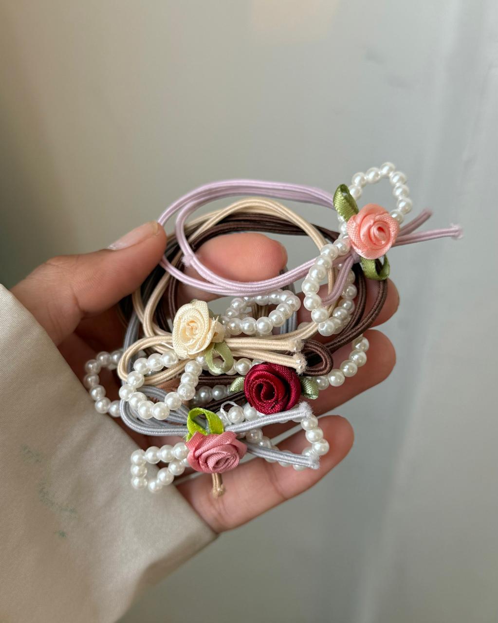 Pearl hair tie, rose hair tie, bow hairtie, pink hair accessories, beige hair accessories, brown hair accessories