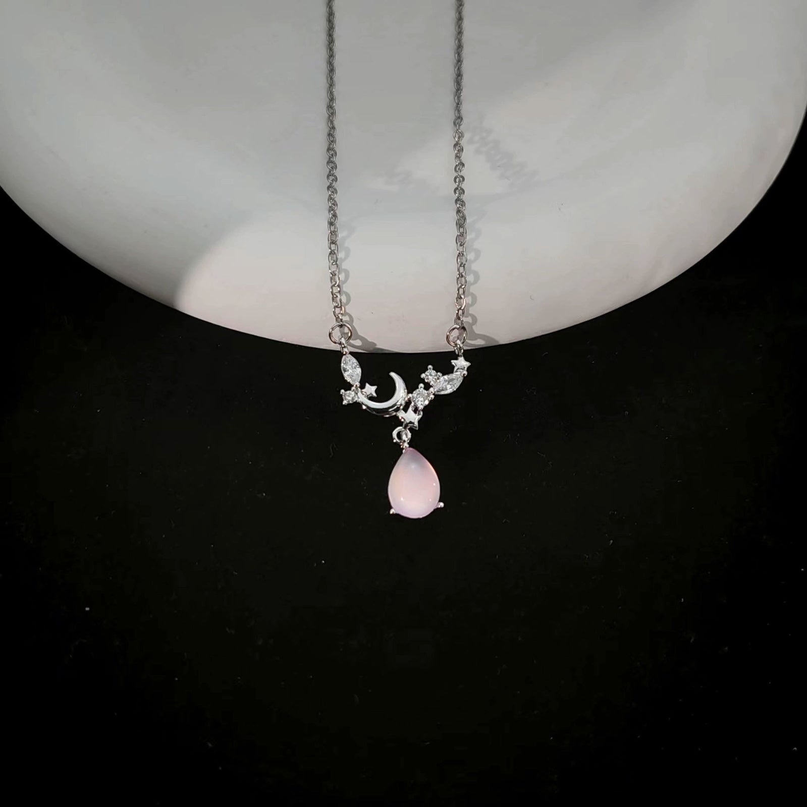 Silver necklace, pink necklace, dainty necklace, rhinestone necklace, Pinterest inspired jewellery, anti tarnish necklace, stainless steel necklace, silver jewellery