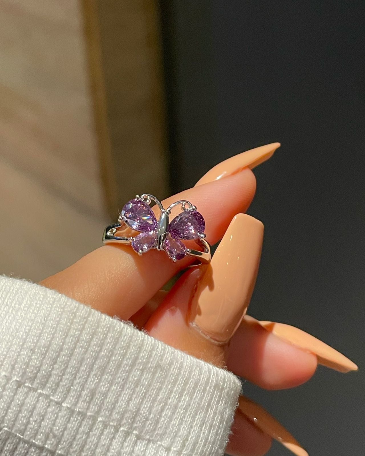 Nature lover ring, soft girl aesthetic, gift for her, purple jewelery, purple Butterfly ring, purple ring.