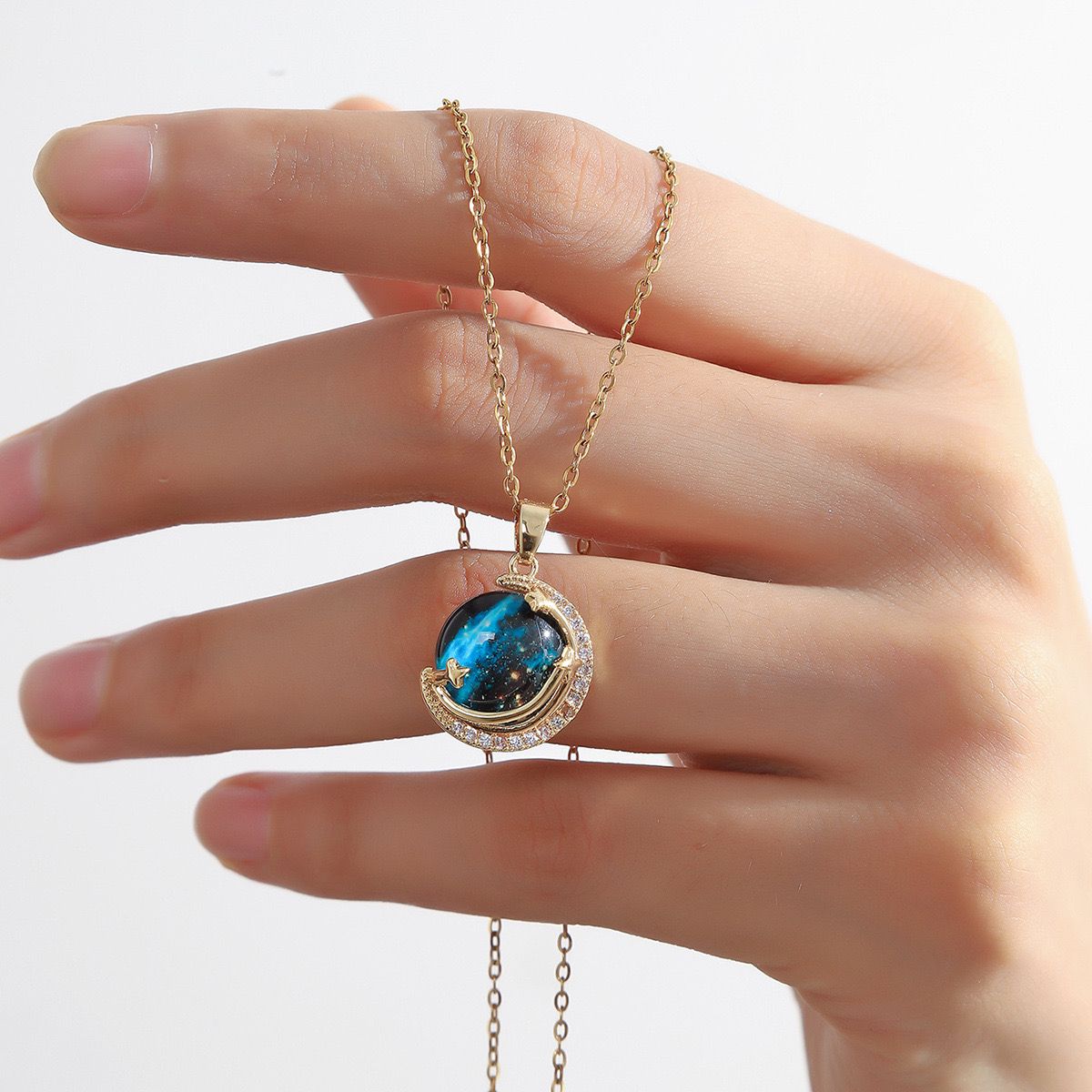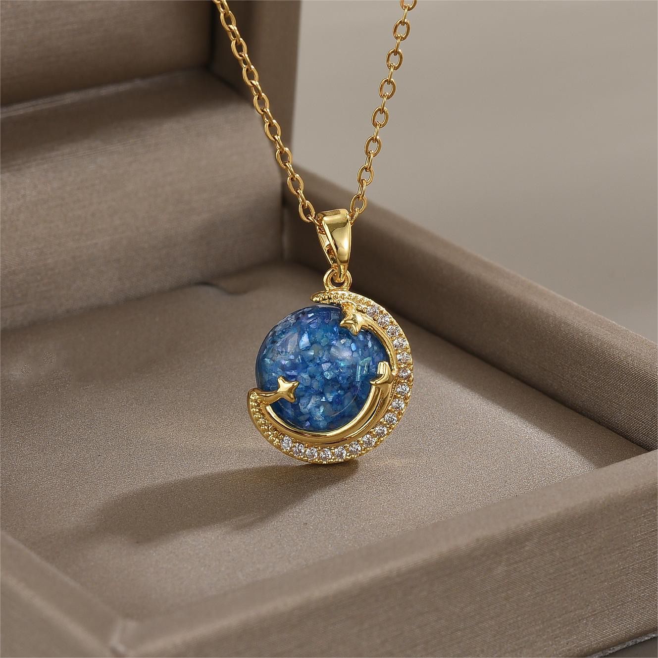 stainless steel necklace , golden necklace, anti tarnish necklace, anti tarnish jewellery, princess necklace, blue jewelery, blue planet necklace, planet necklace, star necklace.