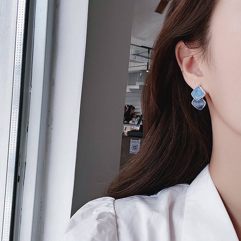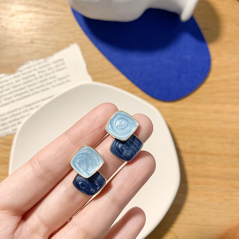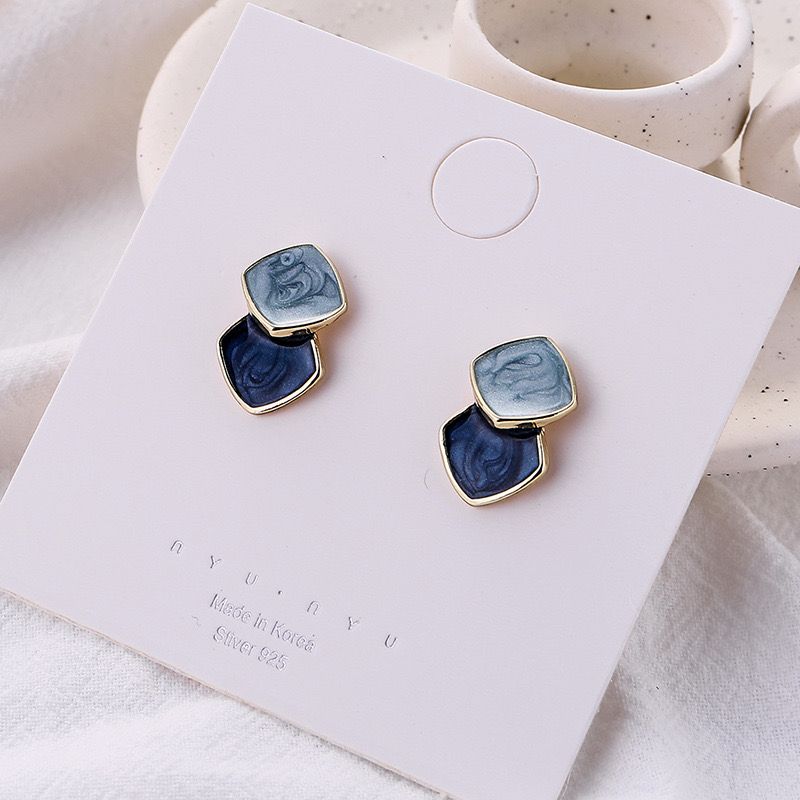 Anti tarnish earring, blue earring, stainless steel earring, pinterest inspired jewellery, block colour earring