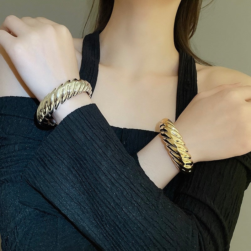 Handcuffs, gold bracelet, stackable bracelet, Pinterest accessories, chunky bangles
