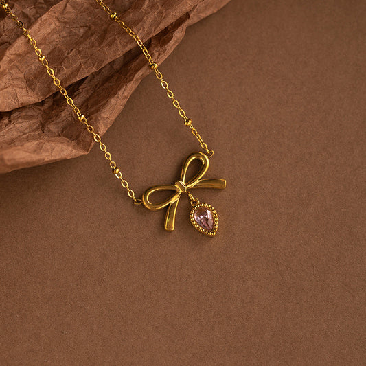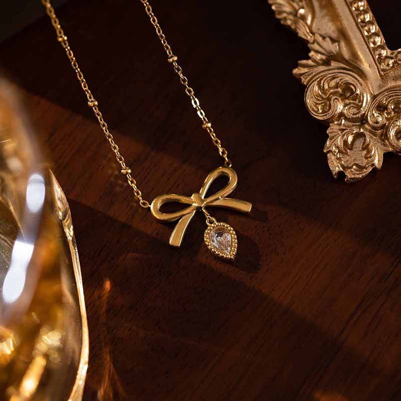 Gold necklace, bow necklace, charm necklace, gold plated necklace, trendy necklace, Pinteresty necklace, anti tarnish necklace, Pinterest inspired jewellery
