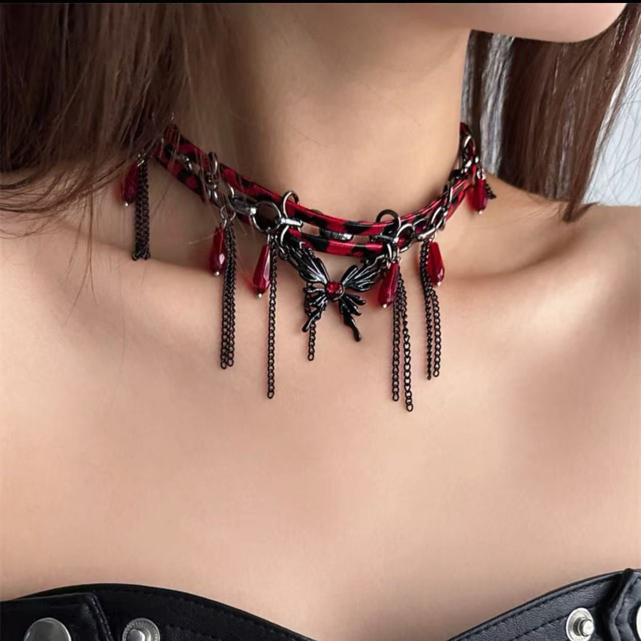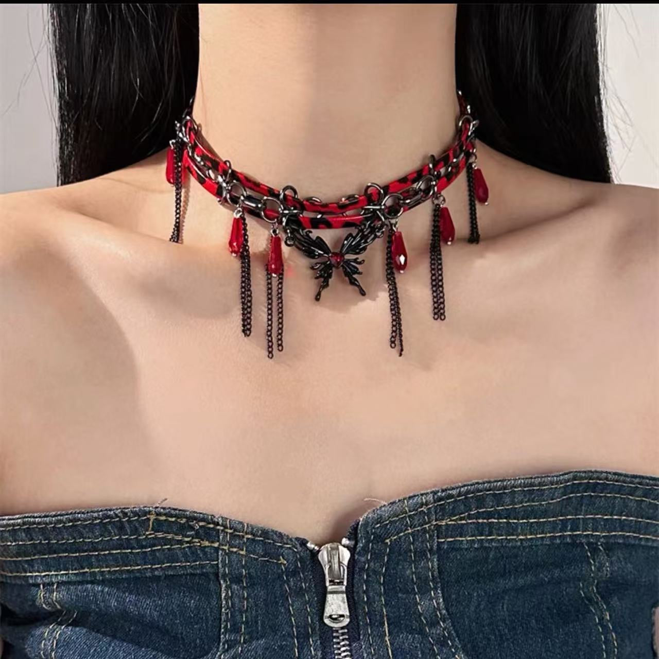 Black Necklace, red Necklace, Silver Jewellery, butterfly necklace, Pinteresty necklace, grunge Necklace, grunge aesthetic Jewellery, Silver Necklace, baddie jewellery