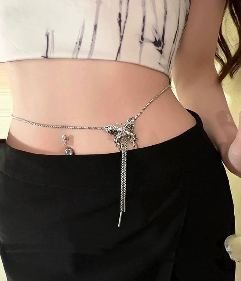 Silver necklace, butterfly necklace, anti tarnish jewellery, waist chain, arm jewellery, stainless steel jewellery, Pinterest inspired jewellery, trending accessories