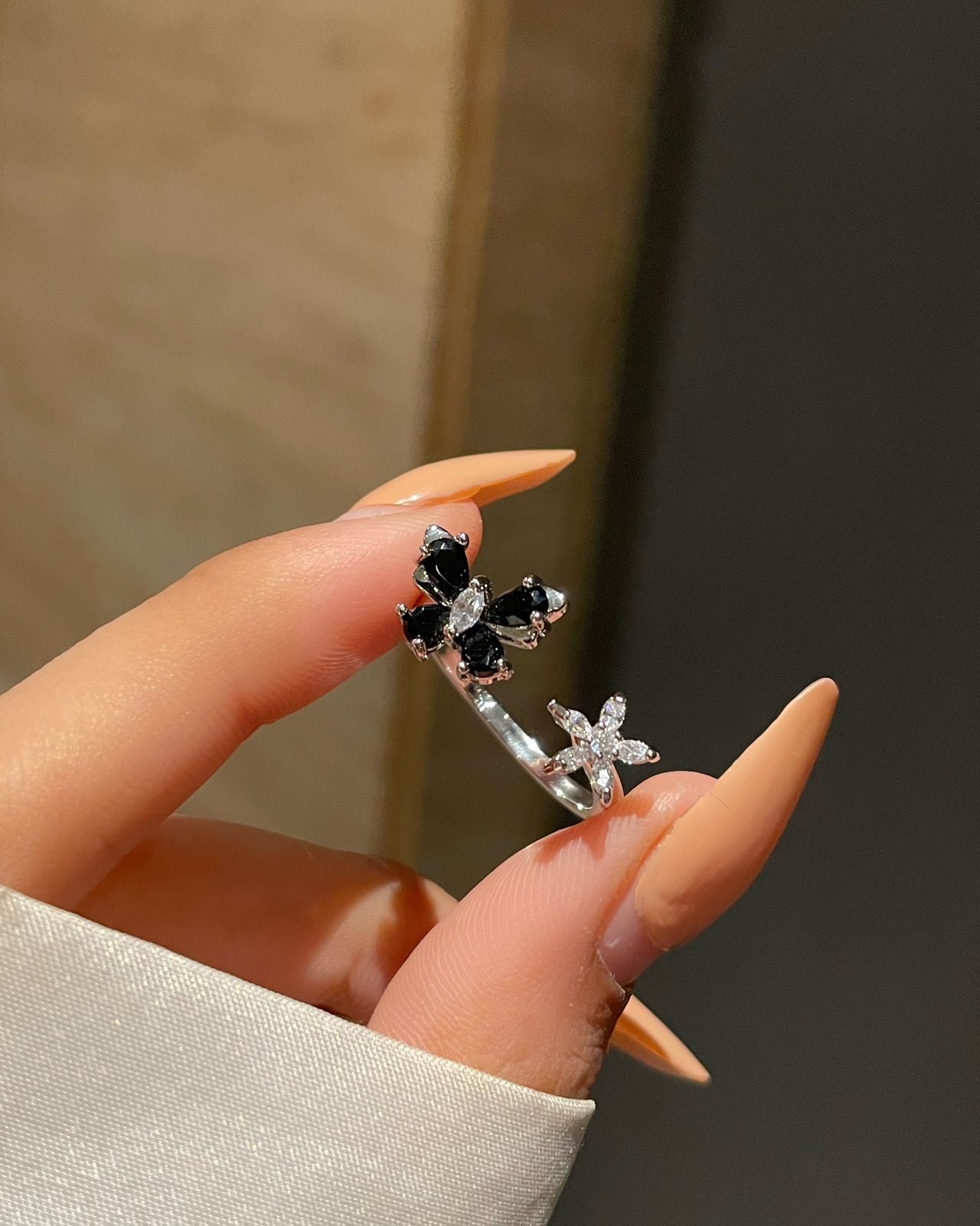 Minimal ring, minimal jewelery, gift for her, floral jewellery, flower ring, floral ring, black butterfly ring, butterfly jewellery, black ring.