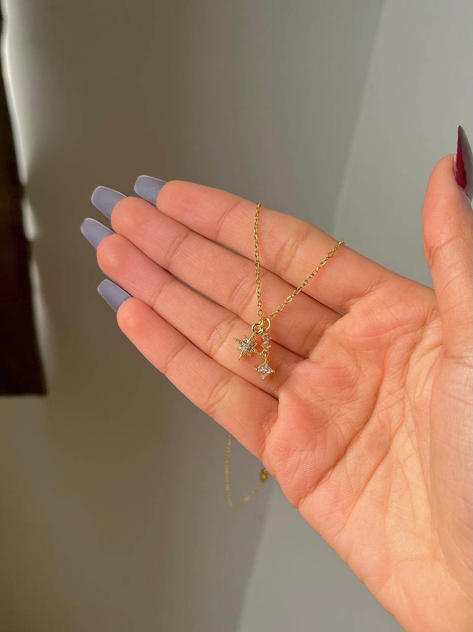 stainless steel necklace , golden necklace, anti tarnish necklace, anti tarnish jewellery, white necklace, star necklace, charm jewellery.