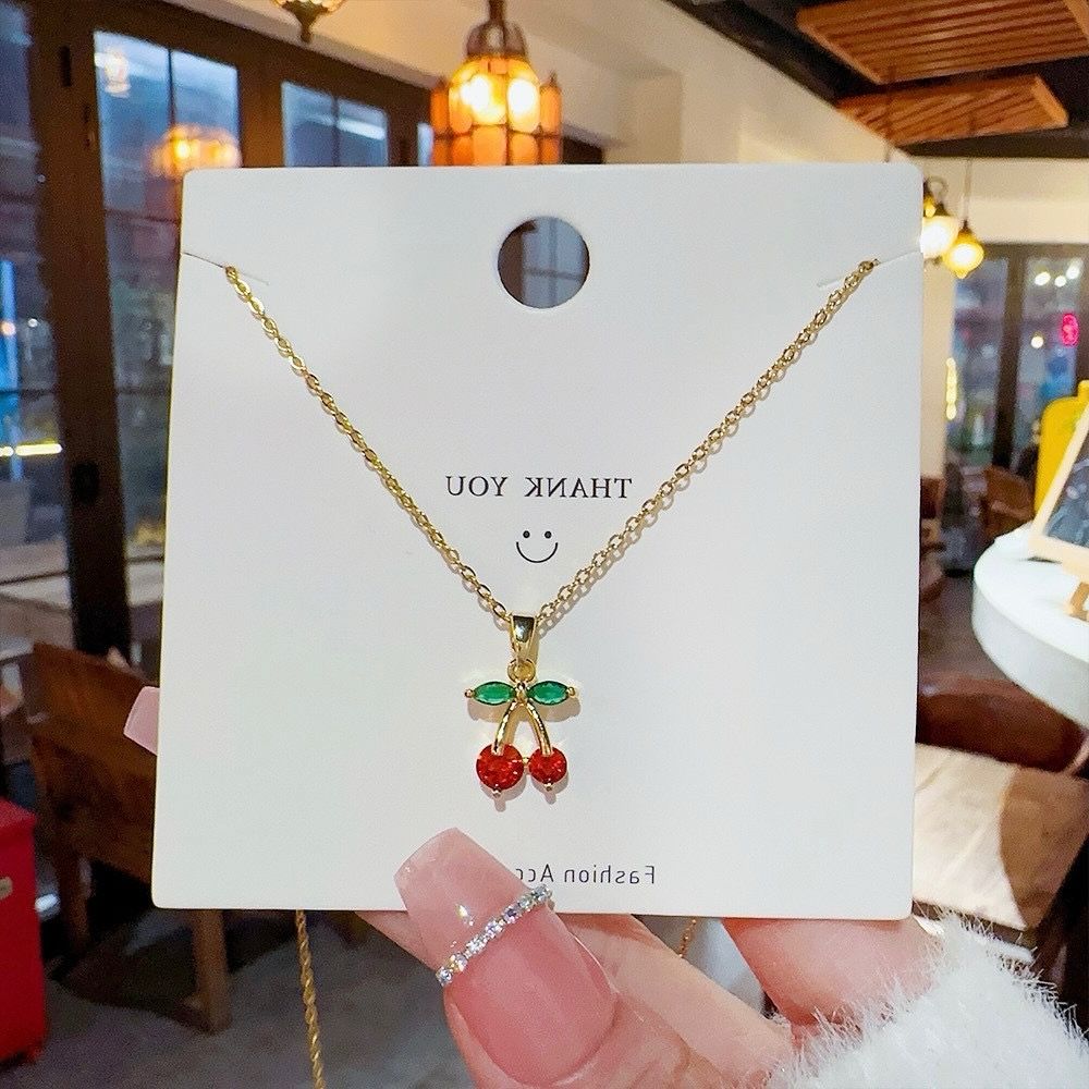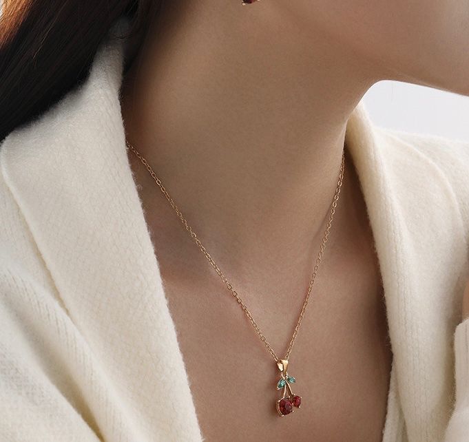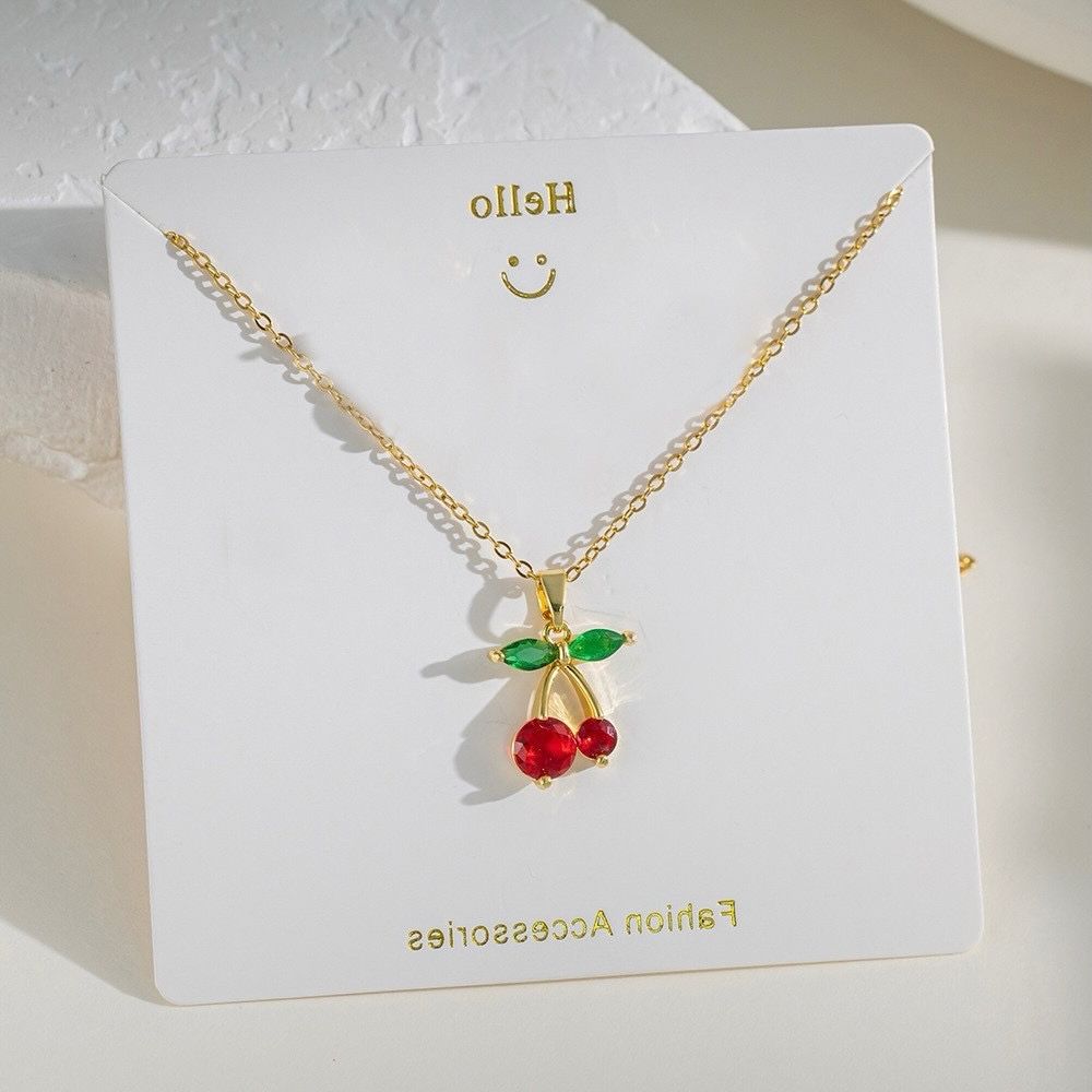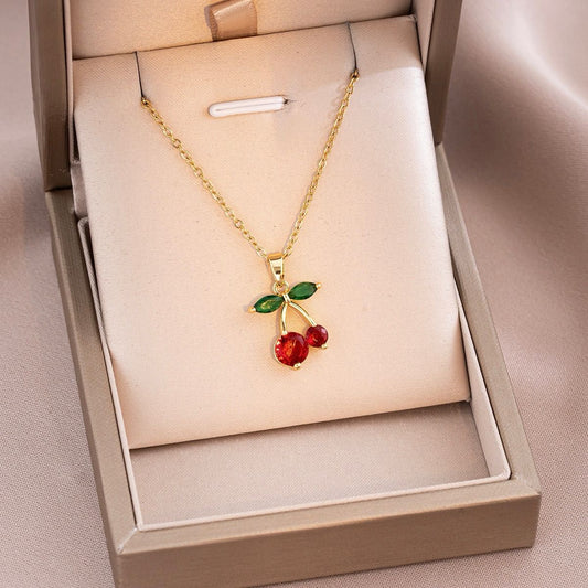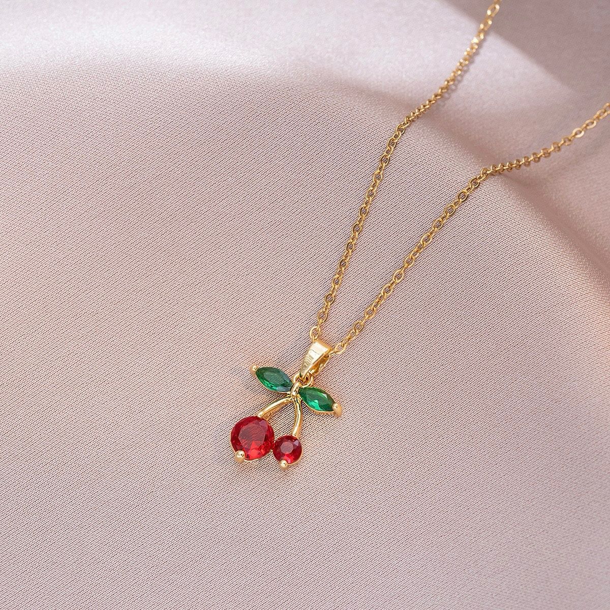 Cherry Necklace, red necklace, Pinterest inspired accessories, Pinteresty jewellery, Anti tarnish necklace, gold jewellery, stainless steel necklace, gold plated necklace