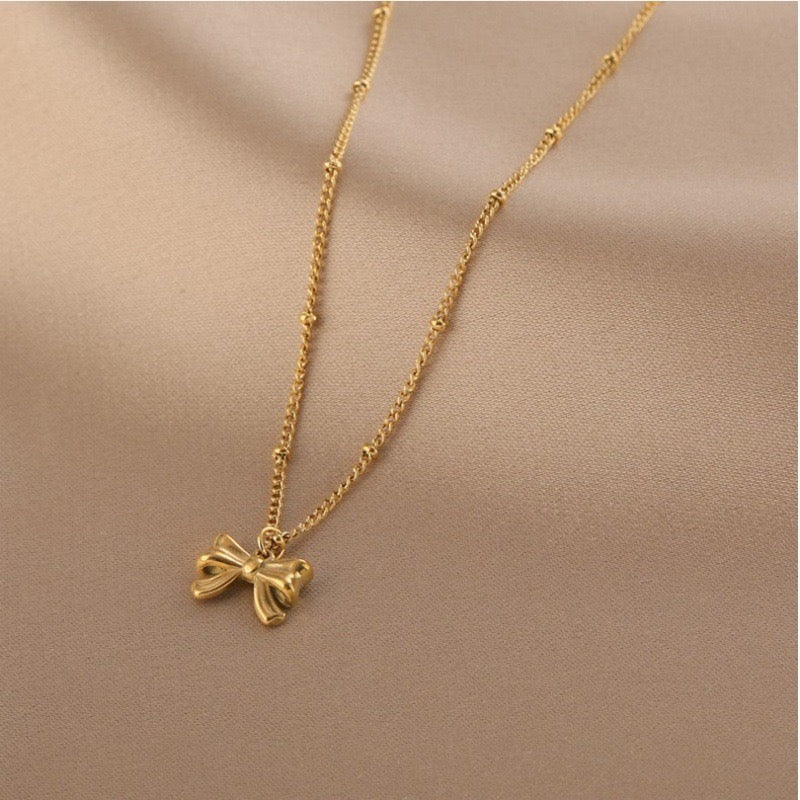 Gold necklace, bow necklace, anti tarnish necklace, stainless steel necklace, Pinterest inspired jewellery, trending accessories, bow accessories