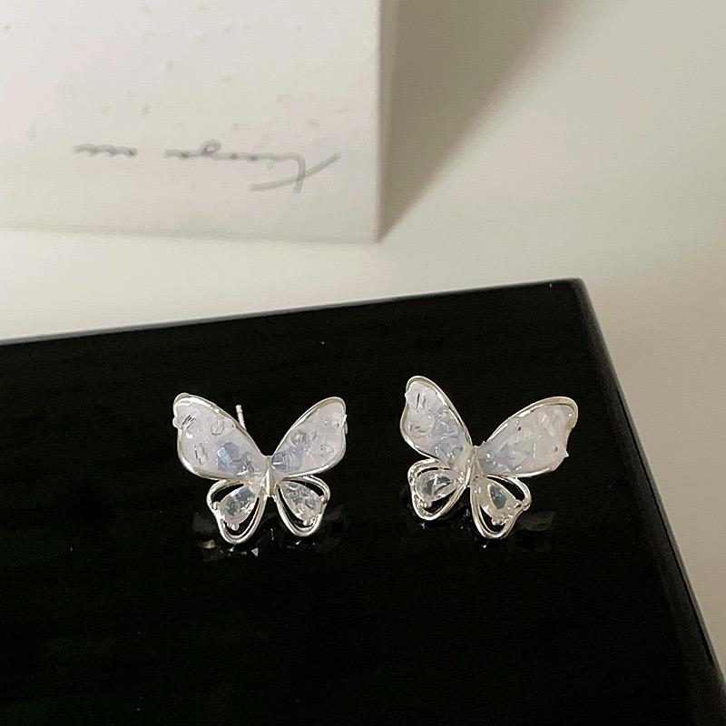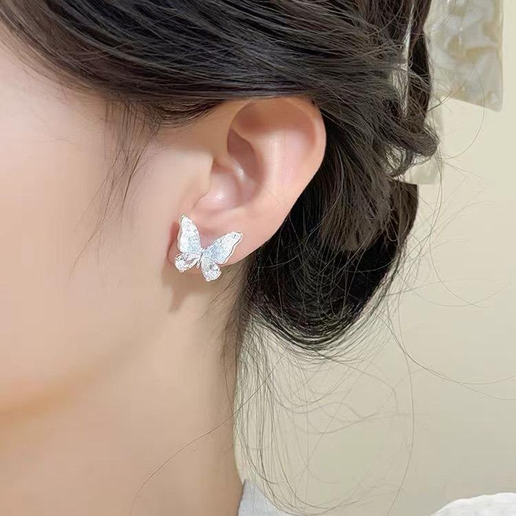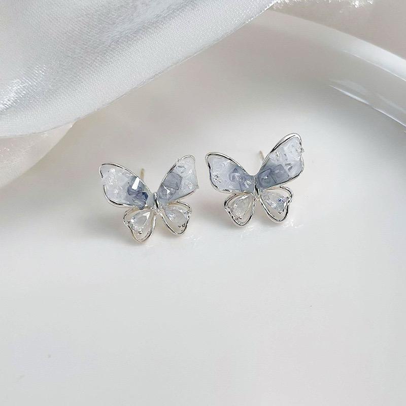 Korean earrings , soft girl aesthetic, ice blue butterfly earrings, blue earrings, crystal earrings.
