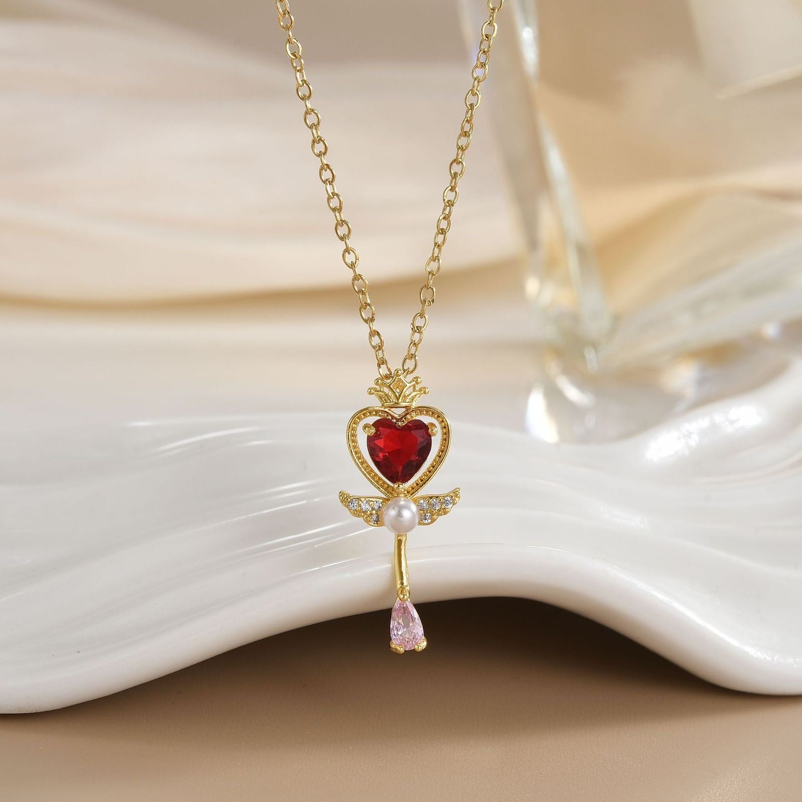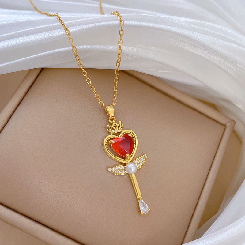 stainless steel necklace , anti tarnish necklace, anti tarnish jewellery, golden necklace, pearl necklace, crown necklace, red necklace, red heart jewellery.