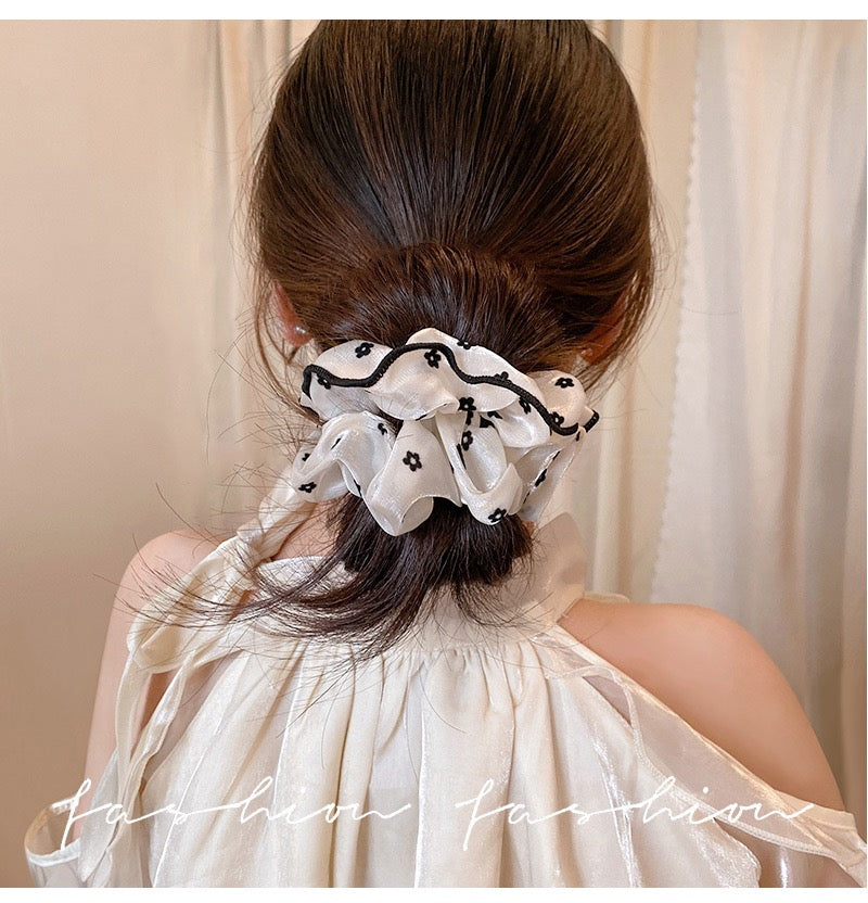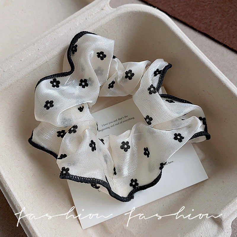 White scrunchie, black scrunchie, flower scrunchie, soft girl accessories, pinteresty scrunchies