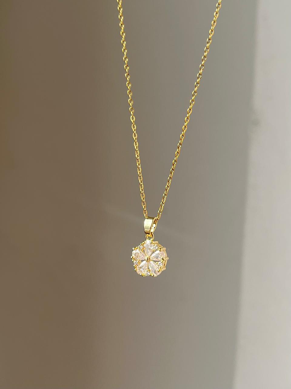 stainless steel necklace , golden necklace, anti tarnish necklace, anti tarnish jewellery, floral necklace, flower necklace, floral jewellery.