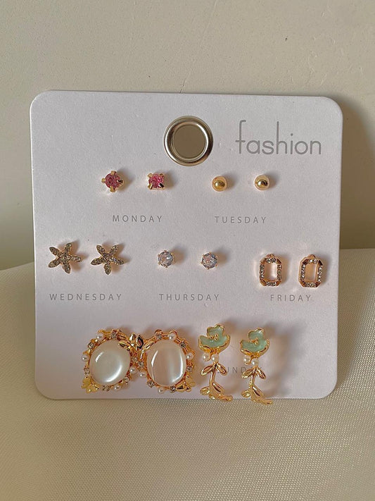 Korean earrings, cute jewellery , soft girl aesthetic, campus collection, small earrings, statement earrings, flower earrings , pearl earrings, green flower earrings, cute earrings, pink earrings, korean jewellery.
