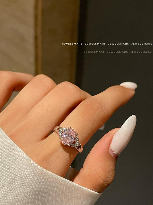 promise ring, cute ring, pink solitaire ring, propose ring, oval cut promise ring