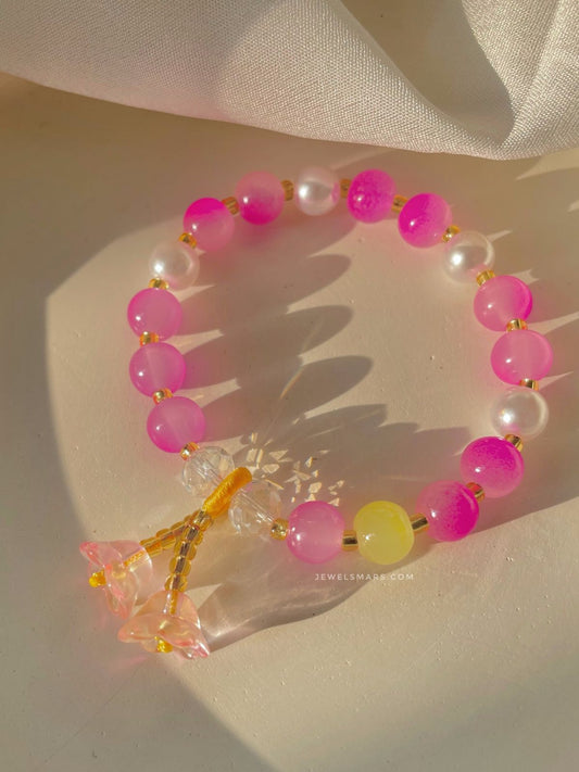 Bestie bracelets ,Crystal bracelets , pink colour bracelets, Crystal beads bracelets, pink colour jewellery, pink flower bracelet, flower jewellery