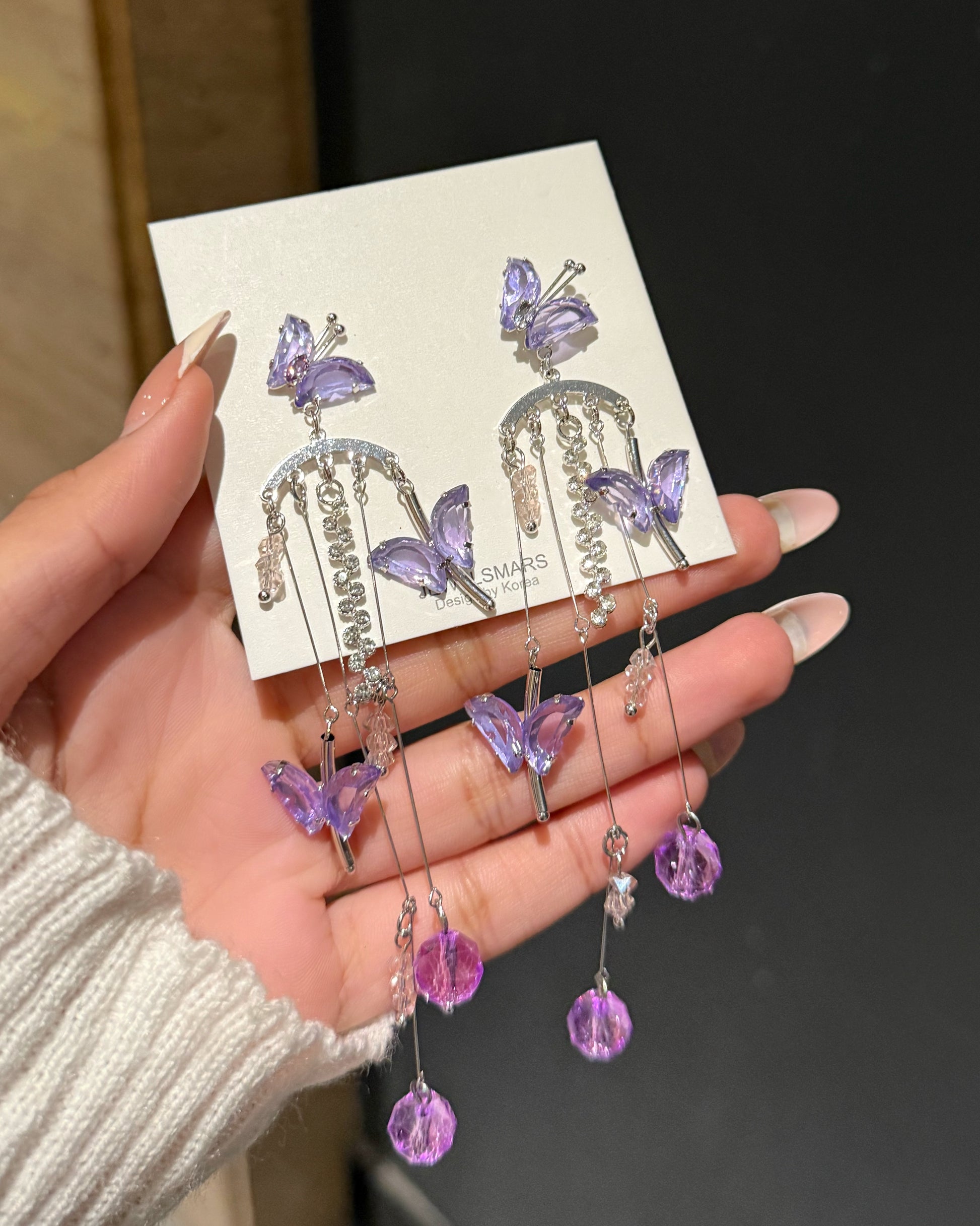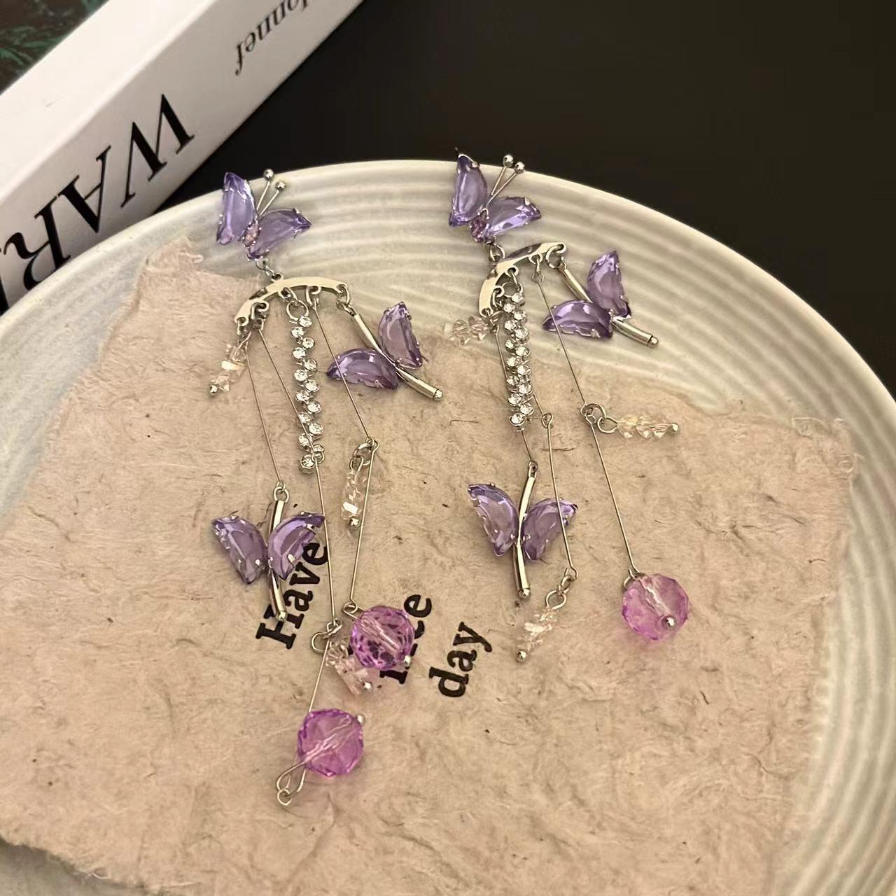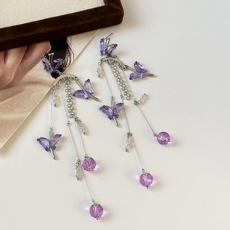 Purple earrings, party earrings, Korean earrings collection , girly girl earrings, glam earrings collection, dreamy earrings, purple butterfly earrings, party earring ms, birthday jewellery, dreamy jewellery, handmade earrings, Princess earrings.