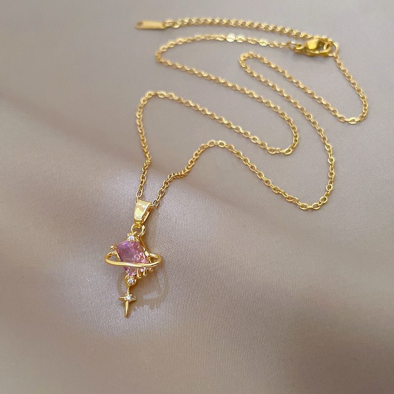 Pink necklace, Gold necklace, Pinterest inspired accessories, Pinteresty jewellery, Anti tarnish necklace, gold jewellery, stainless steel necklace, gold plated necklace