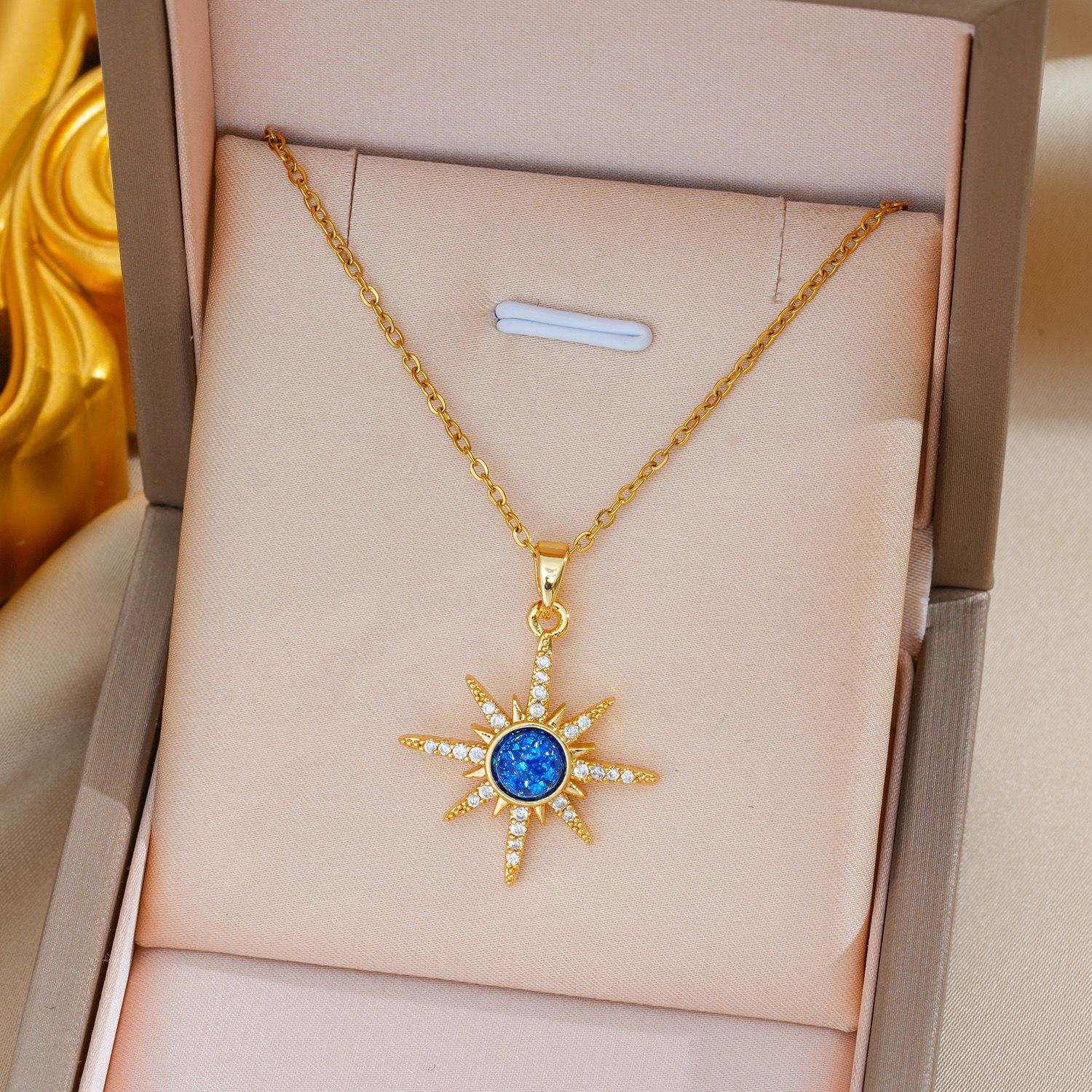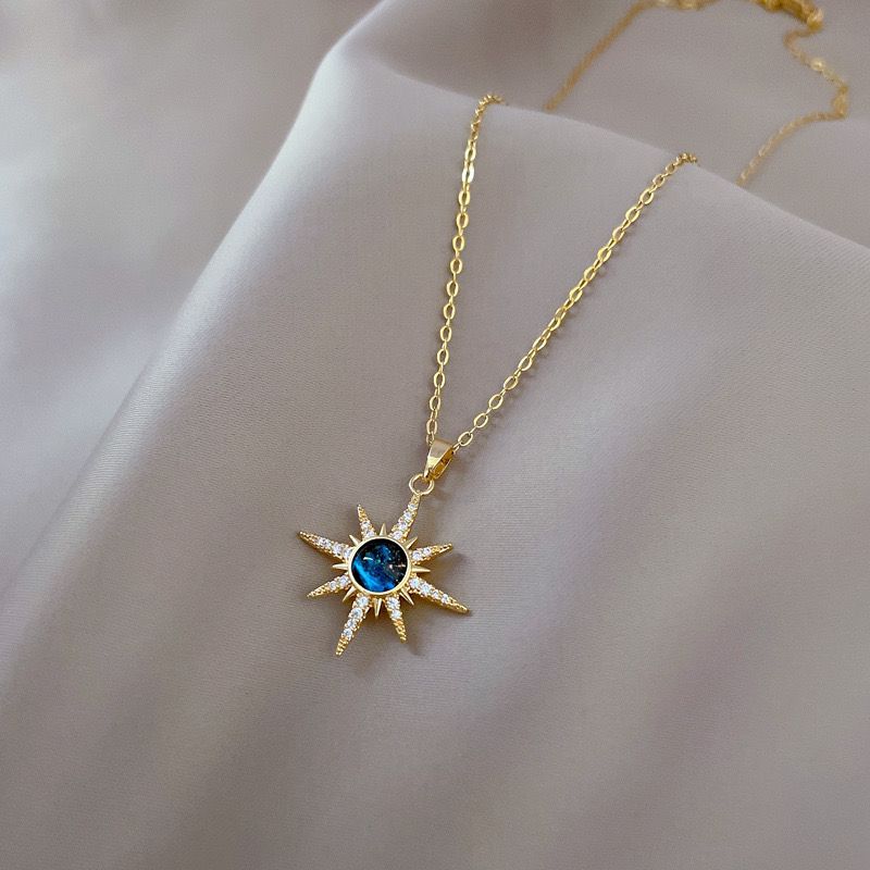 stainless steel necklace , golden necklace, anti tarnish necklace, anti tarnish jewellery, princess necklace, blue jewelery, blue necklace, sun necklace, star necklace.