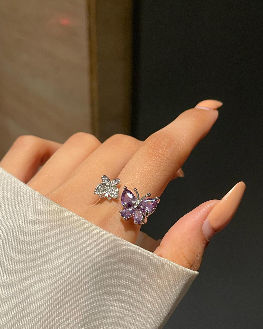 Nature lover ring, soft girl aesthetic, gift for her, purple jewelery, purple Butterfly ring, purple ring.