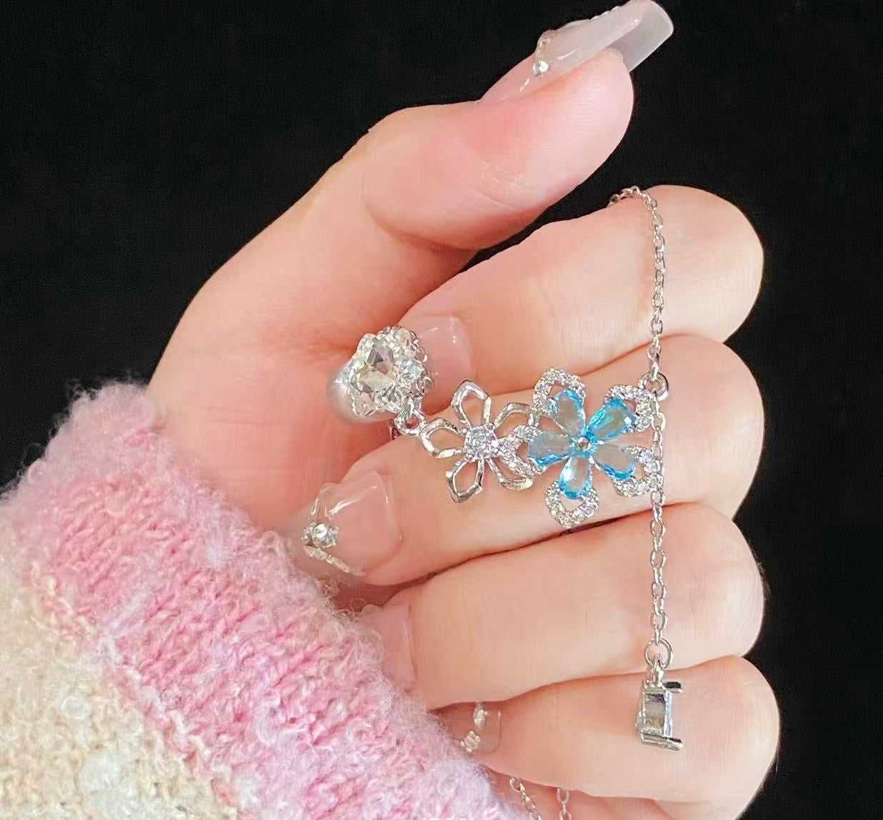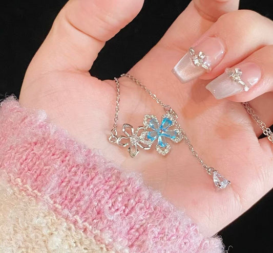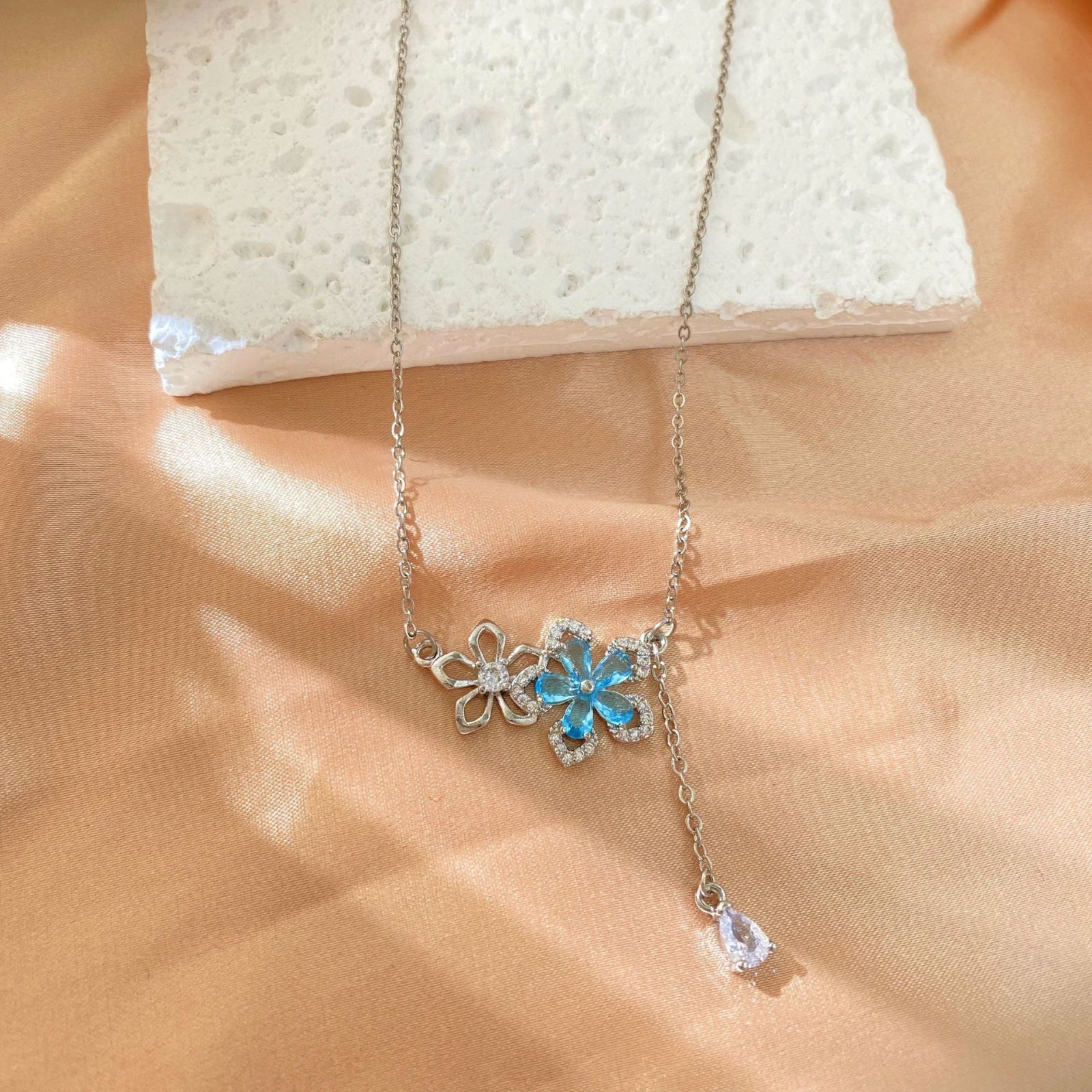 Silver necklace, dangling necklace, white necklace, blue necklace, flower necklace, Pinterest inspired jewellery, anti tarnish necklace, stainless steel necklace, silver jewellery