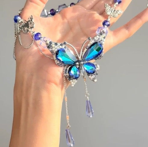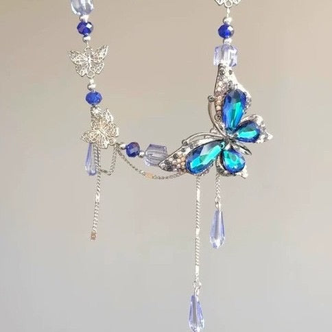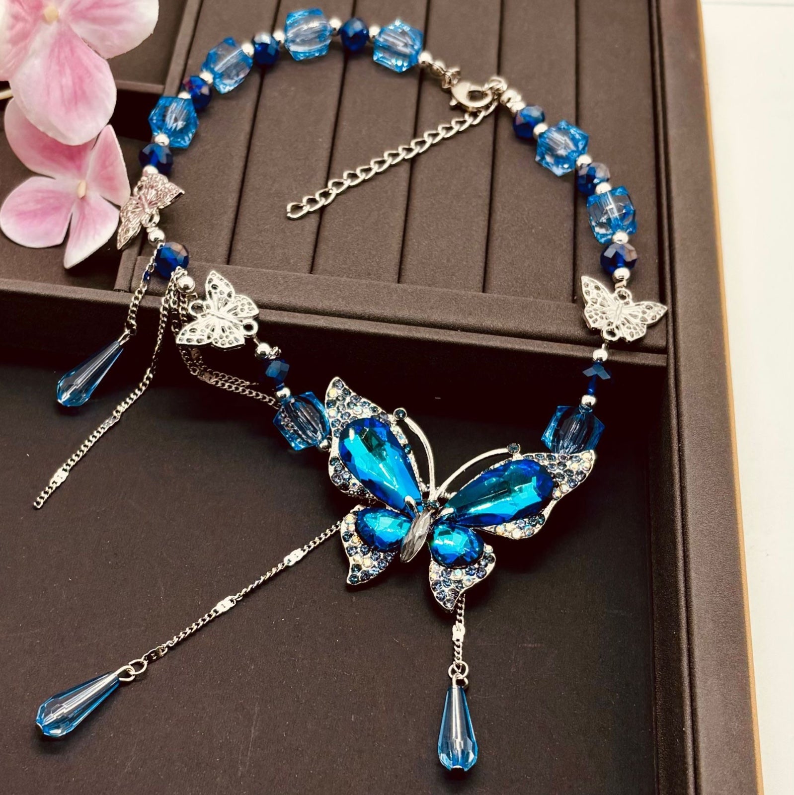 Blue Necklace, butterfly Necklace, Silver Jewellery, Pinteresty necklace, Dreamy Necklace, Fairy Core Jewellery, Silver Necklace