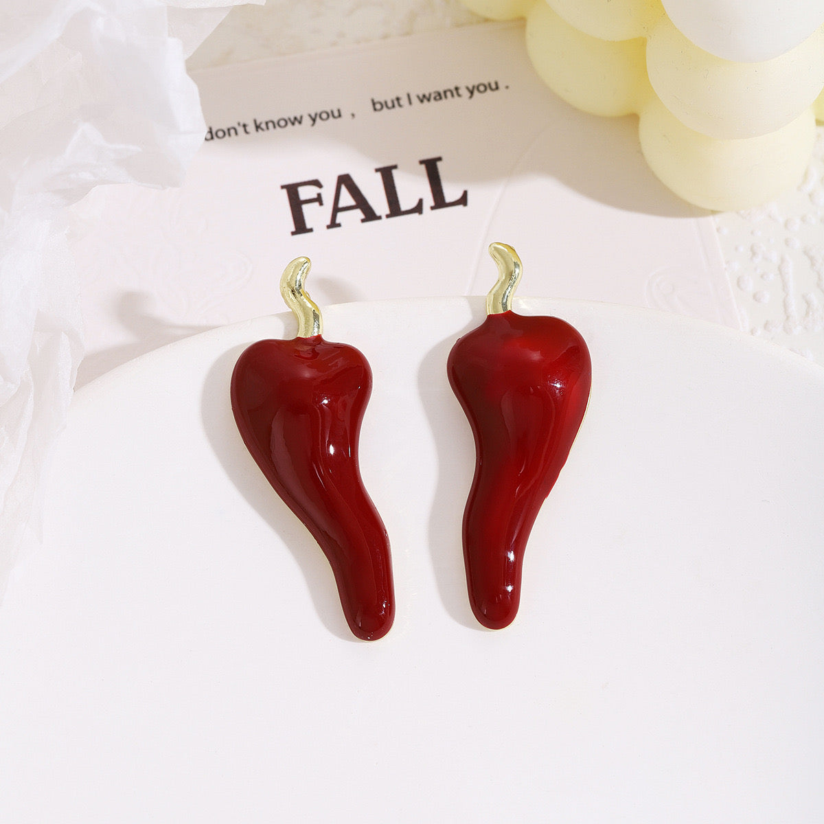 Trendy earrings, chillies earrings, chilly earrings, red earrings, Pinterest inspired accessories, Pinteresty jewellery, gold jewellery