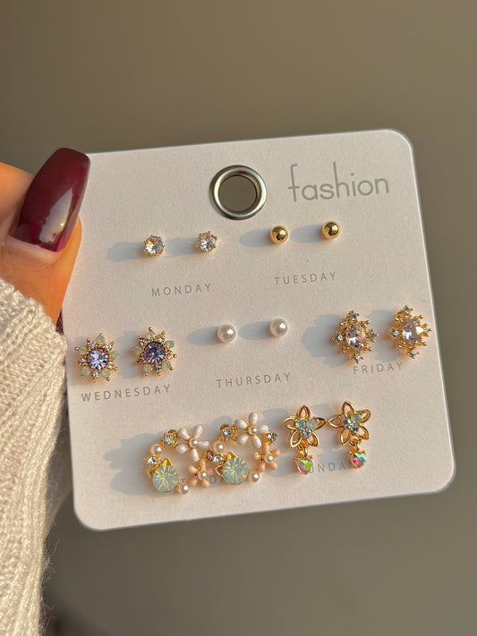 Korean earrings, cute jewellery , soft girl aesthetic, campus collection, small earrings, purple earrings, flower earrings , dreamy earrings, pearl earrings, white flower earrings, cute earrings, pink earrings, korean jewellery.