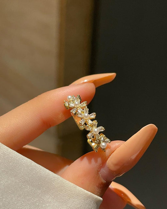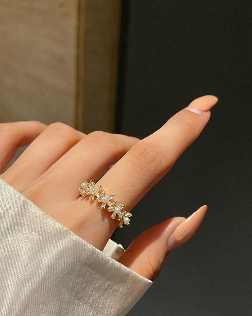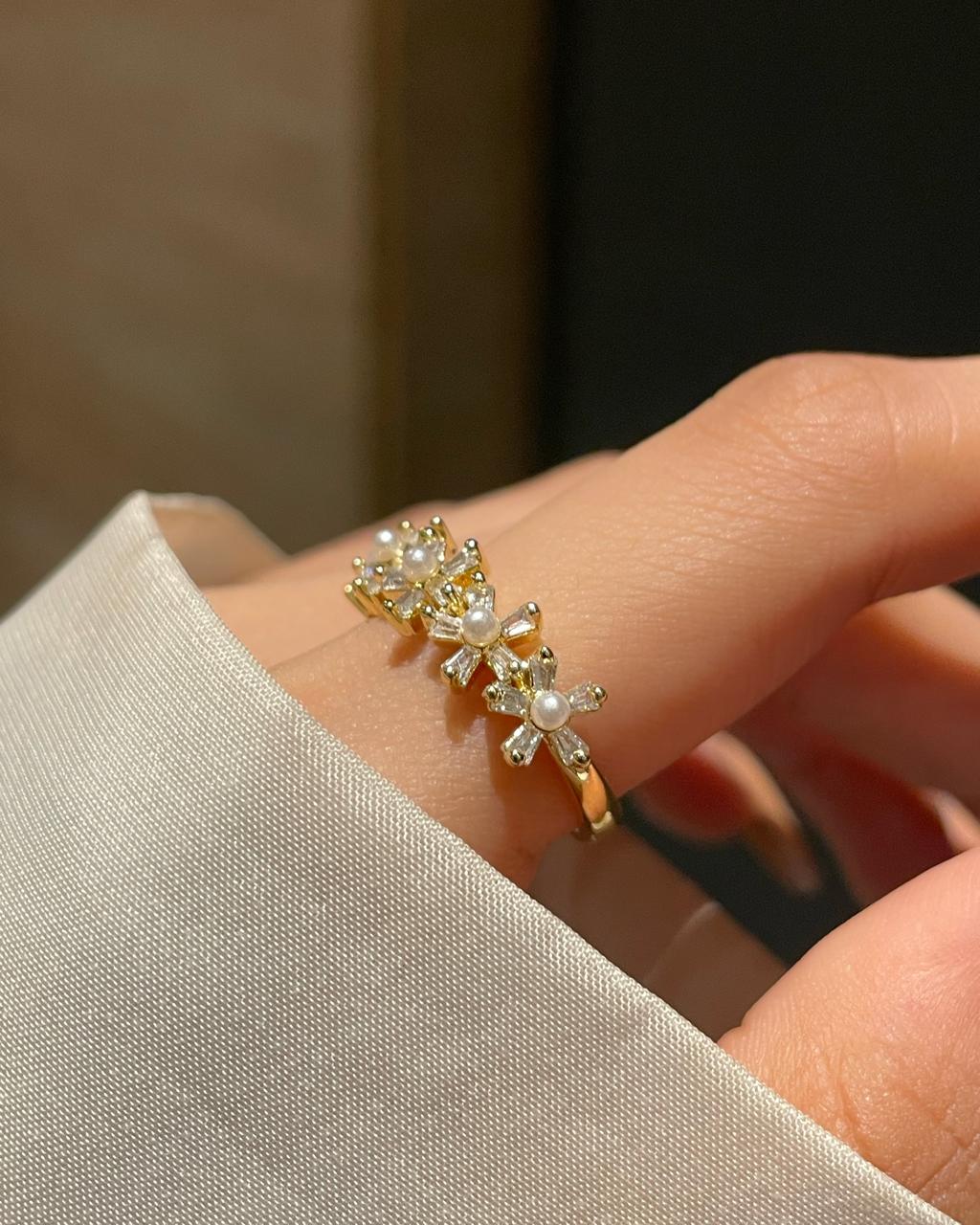 Floral ring, gifts for her , nature lover jewelery, minimal ring, flower ring, pearl ring
