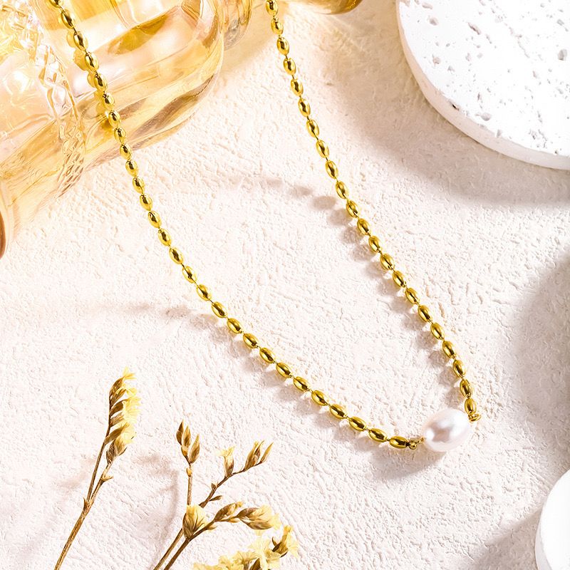 Pearl necklace, gold necklace, dreamy necklace, Pinterest inspired accessories, Pinteresty Jewellery, soft girl aesthetic, Anti tarnish necklace, gold jewellery, gold plated necklace, minimal necklace, beaded necklace
