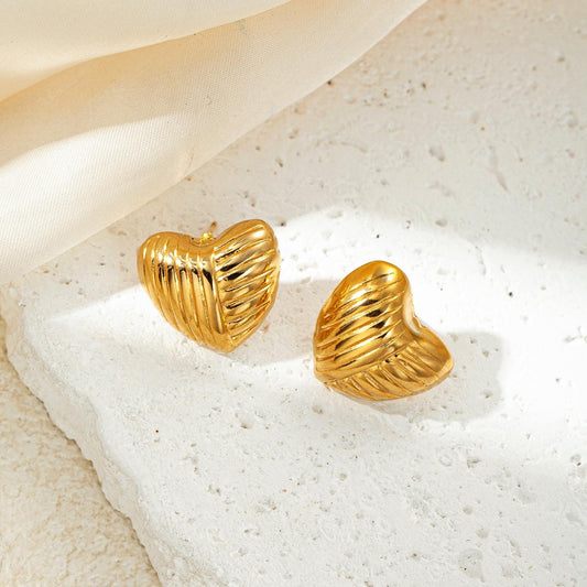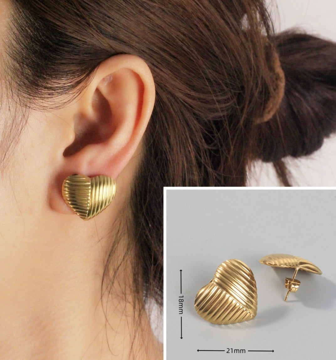 Gold earrings, gold plated earrings, heart earrings, textured earrings, trendy earrings, Pinteresty earrings, anti tarnish earrings, Pinterest inspired jewellery