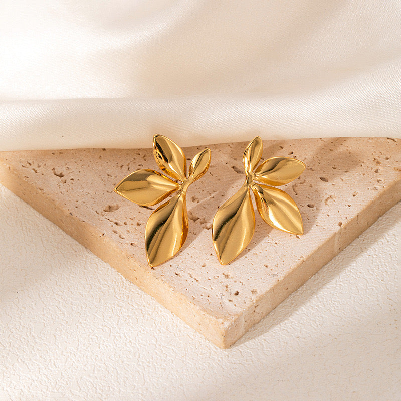 Gold earrings, leaf earrings, Pinterest inspired accessories, Pinteresty jewellery, stainless steel earrings, Anti tarnish earrings, gold jewellery