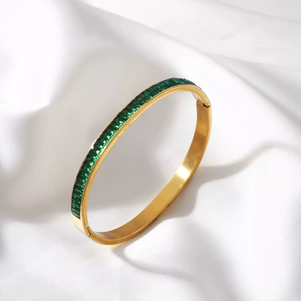 Gold bracelet, stainless steel bracelet, anti tarnish bracelet, gifts for girls, green bracelet