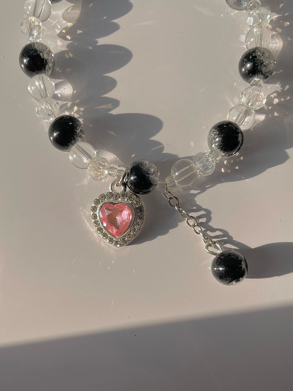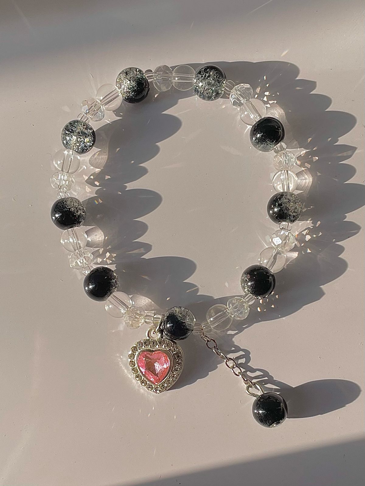 Black & white bracelet, charm bracelets, beaded bracelets, pinteresty bracelets, crystal beads bracelets, heart charm bracelets