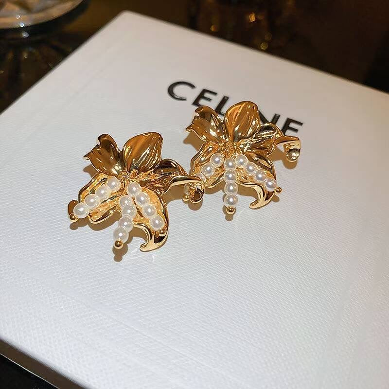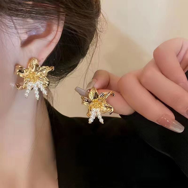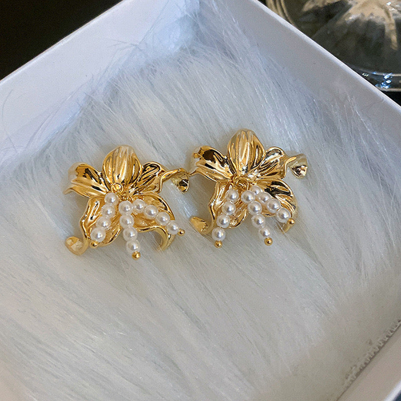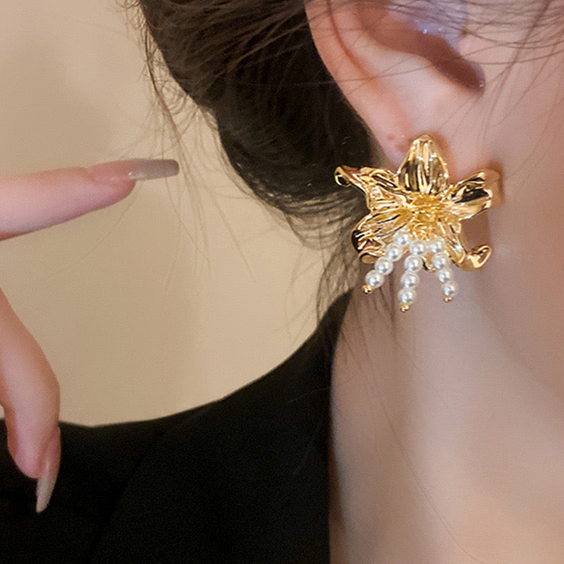 Gold earrings, pearl earrings, floral earrings, statement earrings, Pinterest inspired accessories, Pinteresty jewellery, gold jewellery