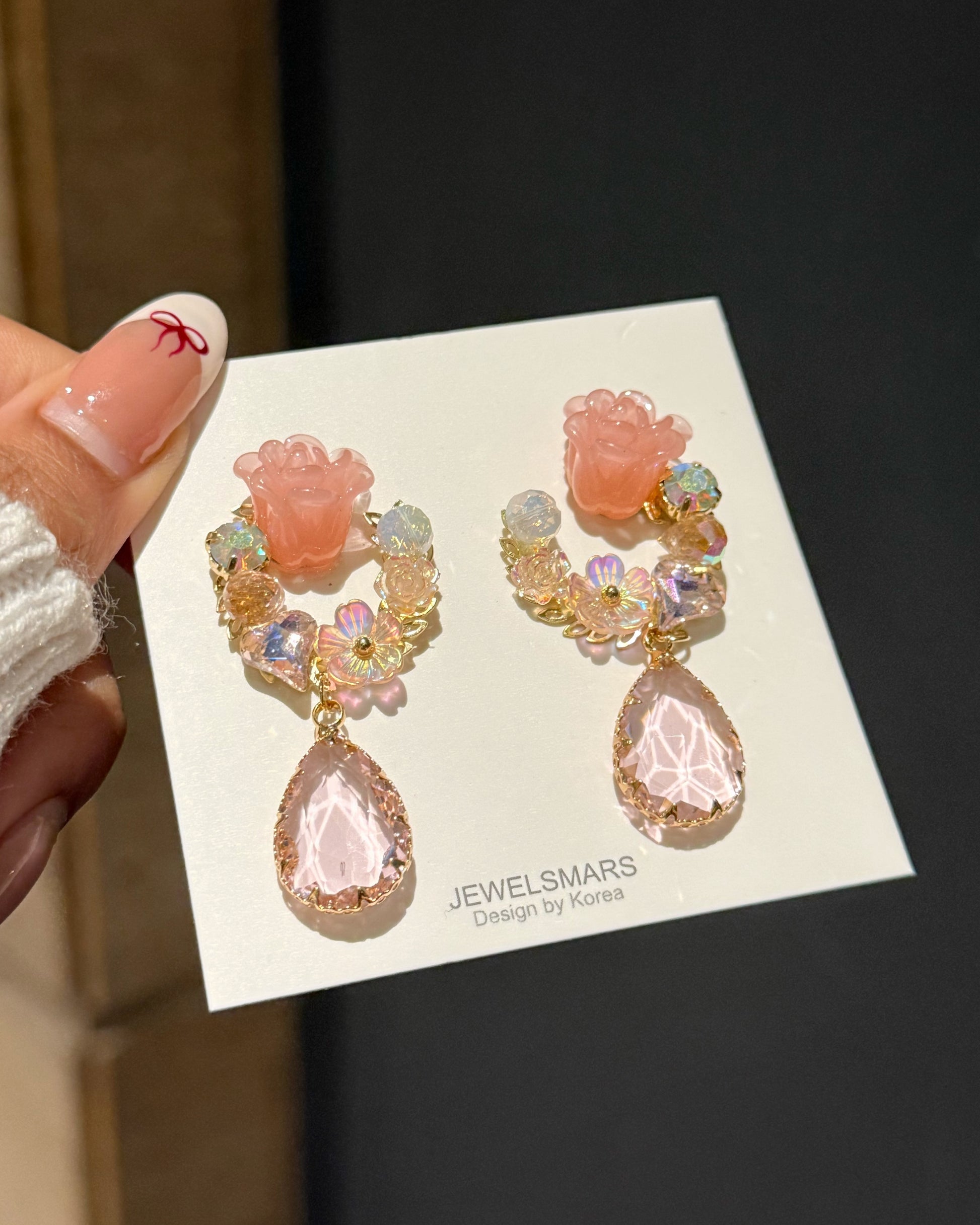 Flower earrings, party earrings, Korean earrings collection , purple floral earrings, girly girl earrings, glam earrings collection, dreamy earrings, peach earrings, birthday jewellery, dreamy jewellery, handmade earrings, Princess earrings.