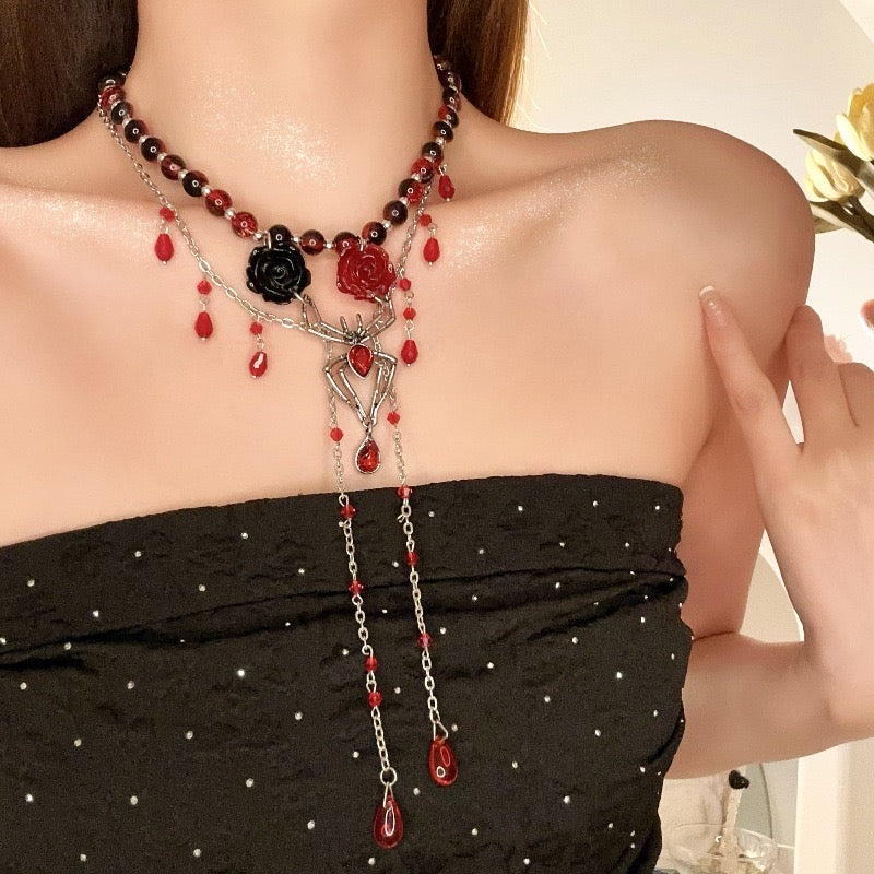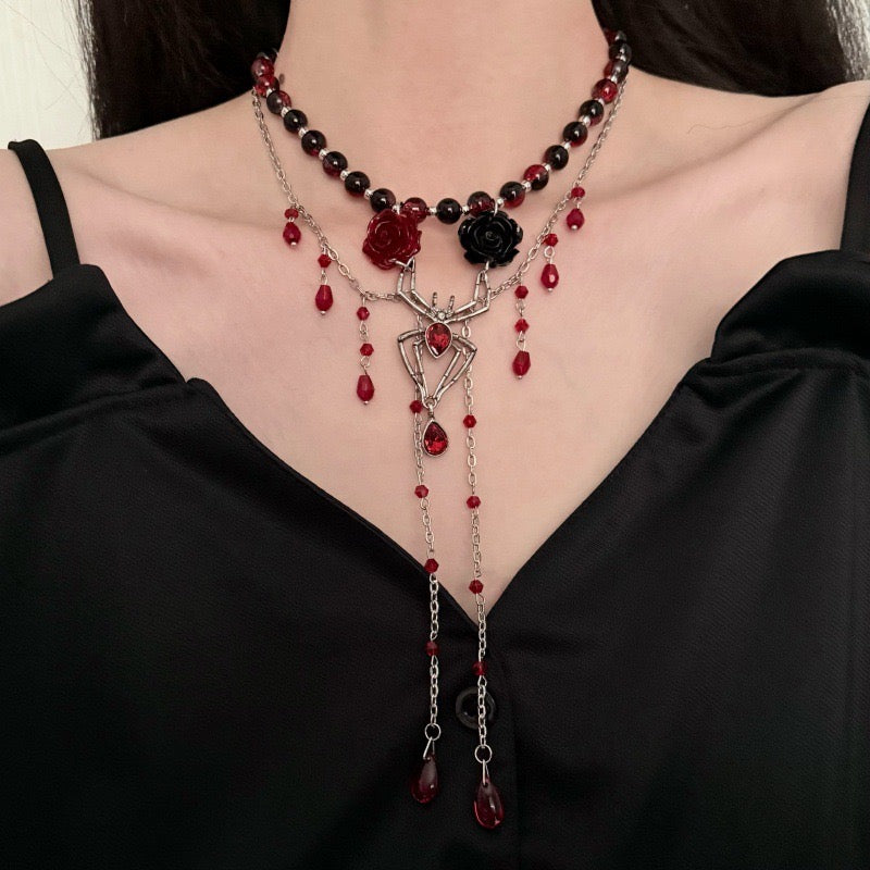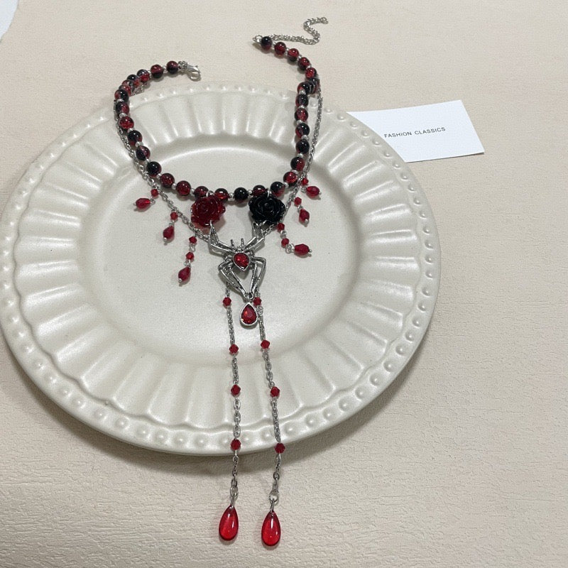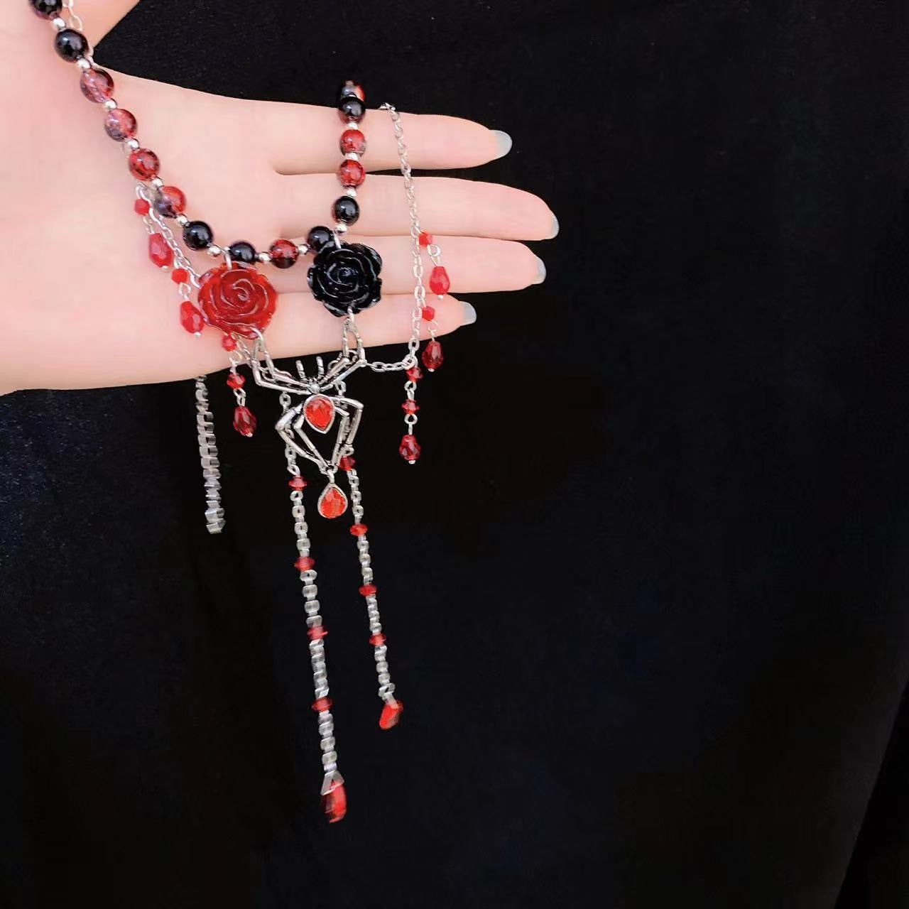 Black Necklace, red Necklace, Silver Jewellery, spider necklace, Pinteresty necklace, grunge Necklace, grunge aesthetic Jewellery, Silver Necklace