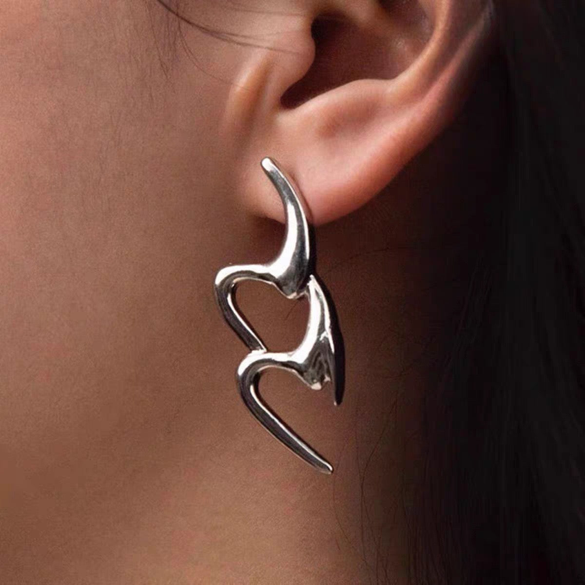 Silver earrings, abstract earrings, trendy earrings, grudge earrings, grunge aesthetic, Pinterest inspired accessories, Pinteresty jewellery, silver jewellery