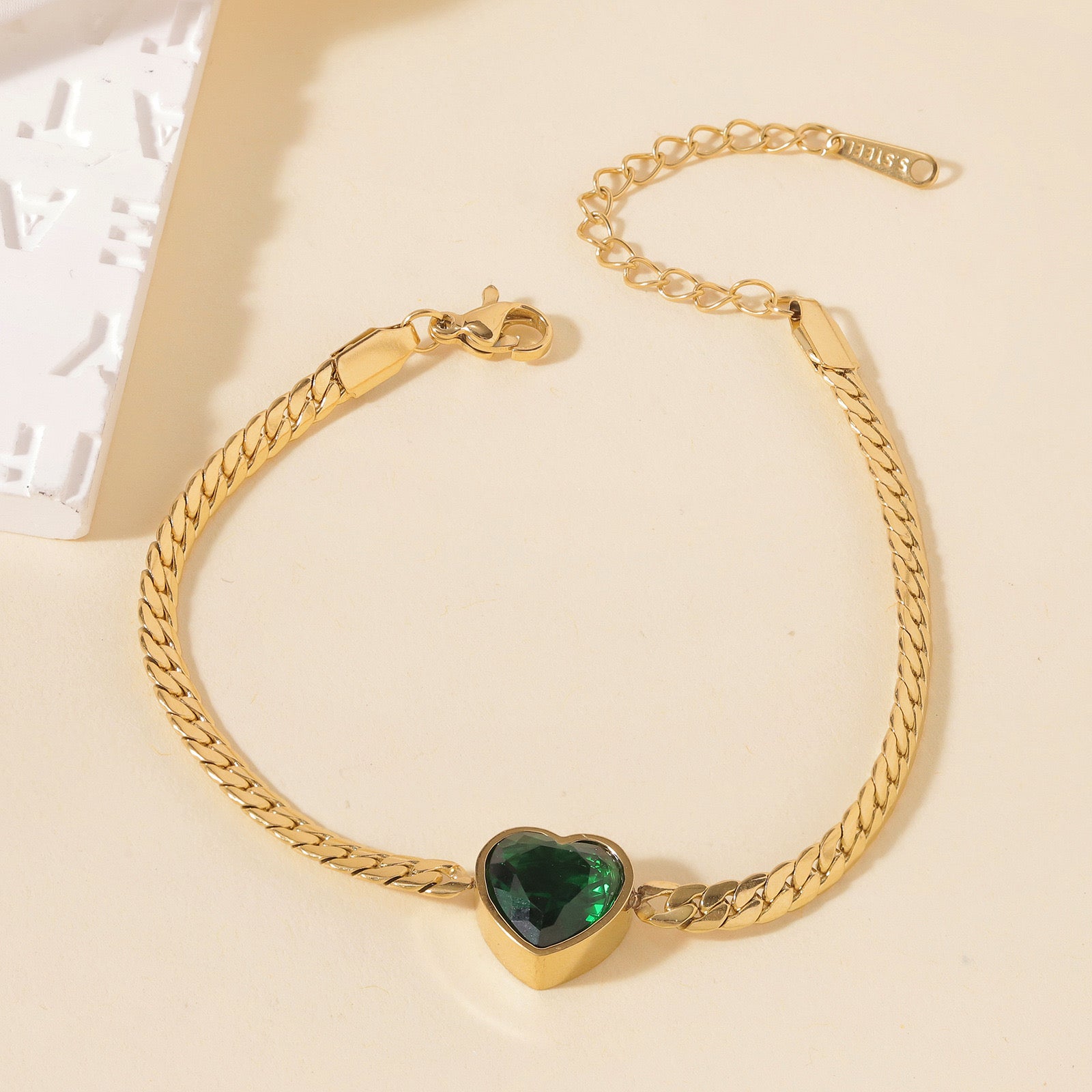 Gold bracelet, gold plated bracelet, trendy bracelet, green bracelet, heart bracelet, chunky bracelet, Pinteresty bracelet, anti tarnish bracelet, Pinterest inspired jewellery