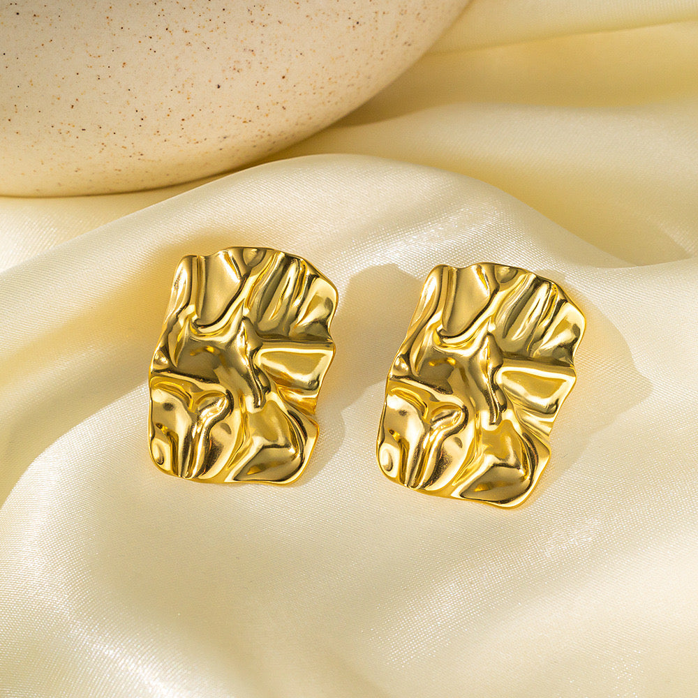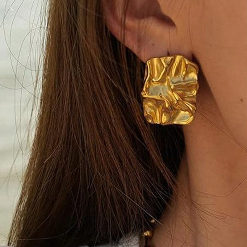Gold earrings, gold plated earrings, square earrings, hammered earrings, trendy earrings, Pinteresty earrings, anti tarnish earrings, Pinterest inspired jewellery