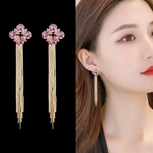 Korean Long tassel drop Earrings- pink