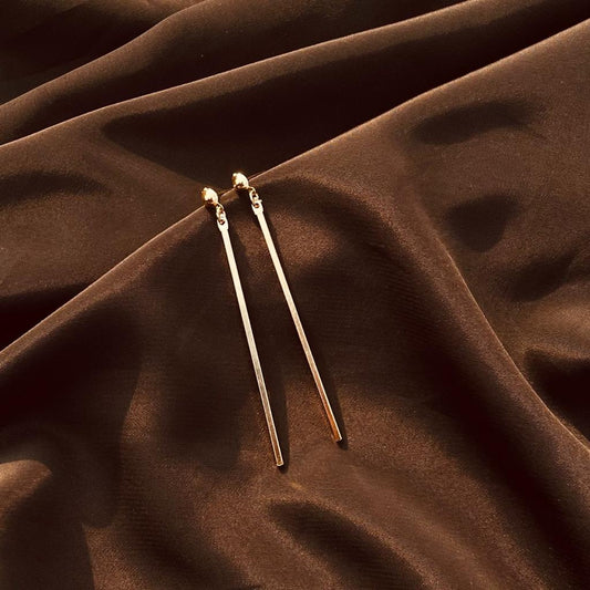 LONG BAR DROP EARRINGS- golden