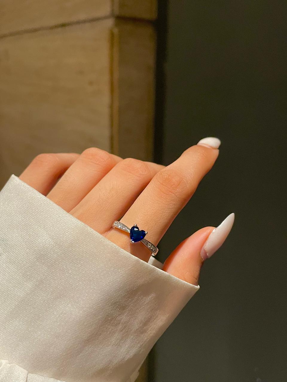 promise ring, propose ring, party ring, gift for her, blue ring, royal blue jewelery, heart ring