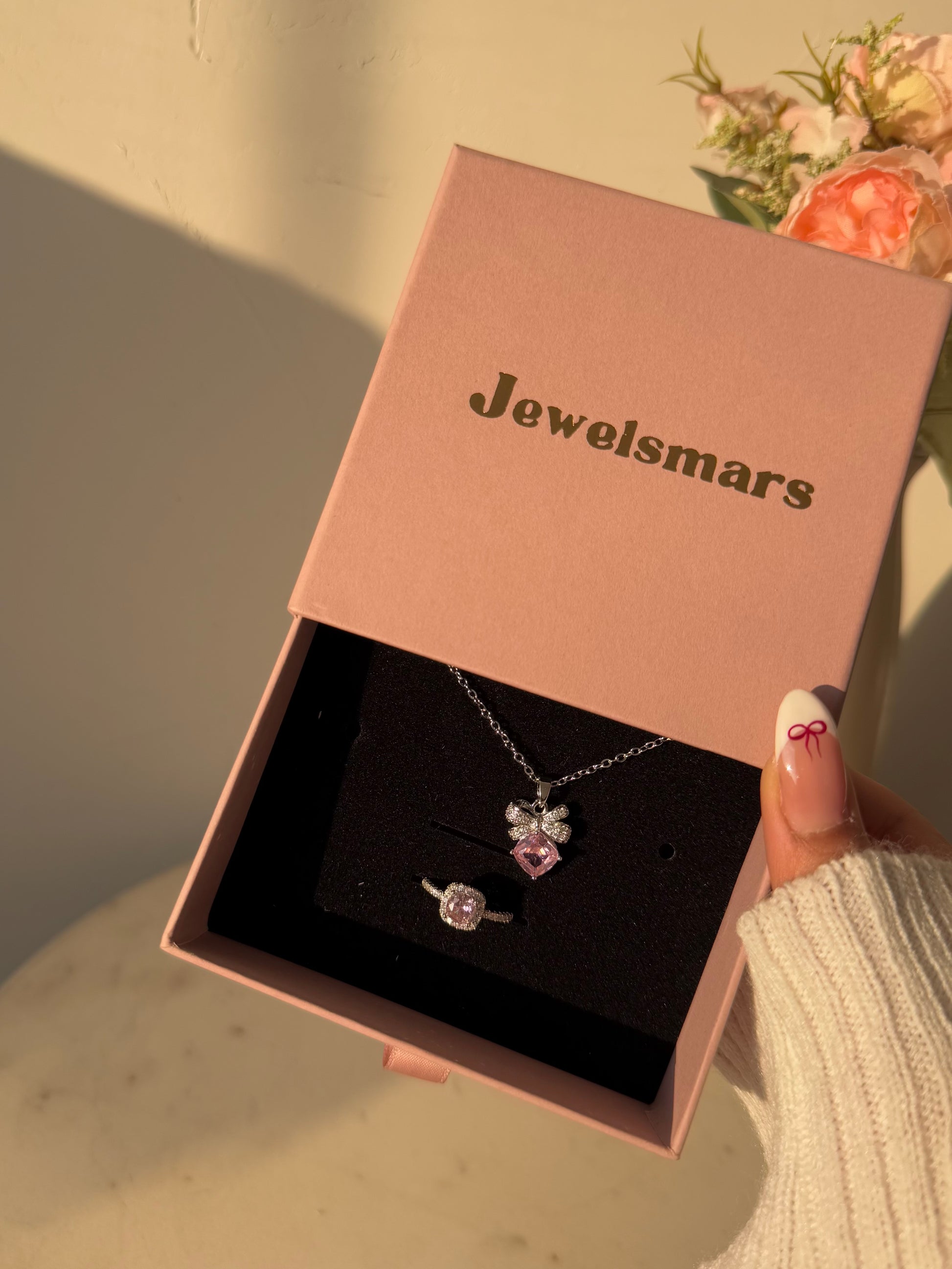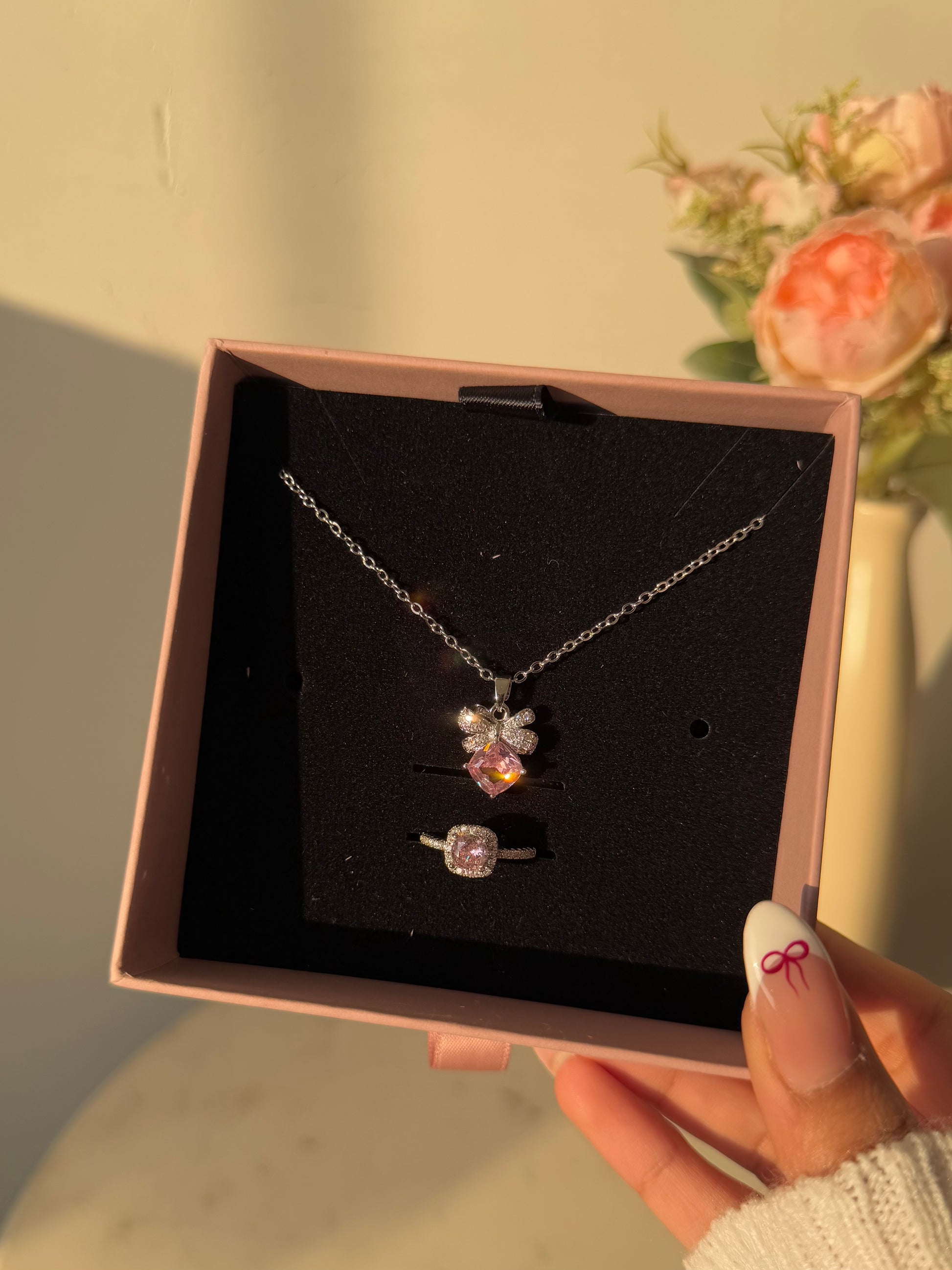 [ pinkĀ gift box, pink bow necklace, gift hamper, Valentineās Day gift hamper, pinkĀ accessories, gift box, gift hamper ]