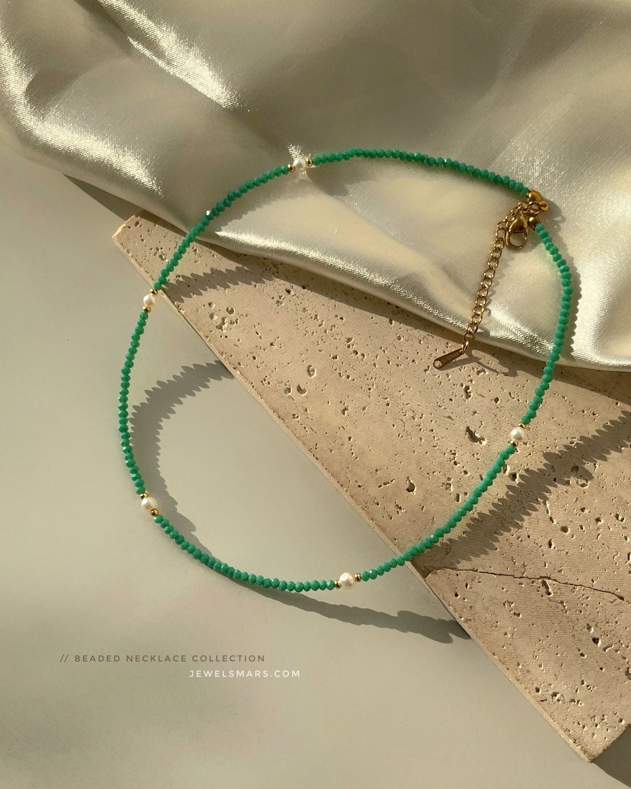Beach necklace ,Crystal beaded necklace, green necklace, beads bracelets, pearl jewellery , pearl necklace.