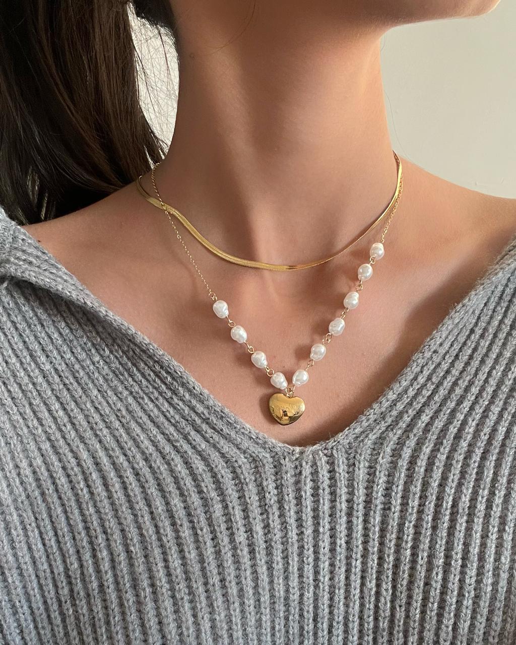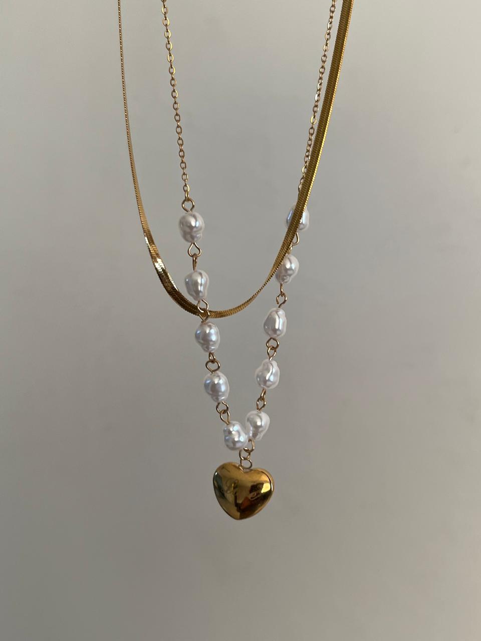 Anti tarnish necklace, pearl necklace, premium quality necklace, gifts for her, gold plated necklace, statement necklace, coquette aesthetic, Pinterest jewellery, heart necklace, pearl jewellery, stainless steel jewellery , minimal jewellery